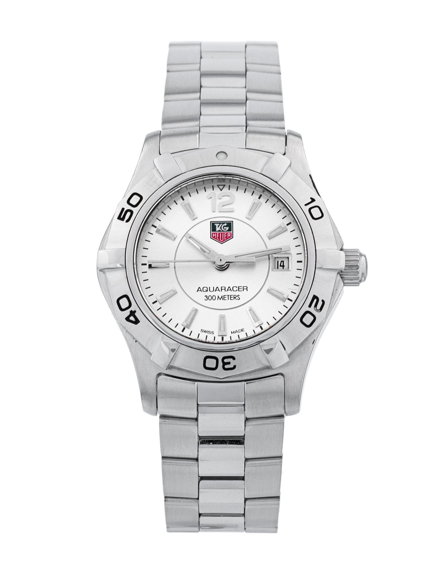 This Tag Heuer Aquaracer WAF1412.BA0823 has a silver baton dial and a bracelet strap. This Tag Heuer has undergone a thorough inspection of accuracy, functionality and condition at our Tag Heuer certified service centre to determine the level of reconditioning required to meet our strict standards. It has also been checked against our records to ensure authenticity. All our watches have a 24-month warranty for your peace of mind.