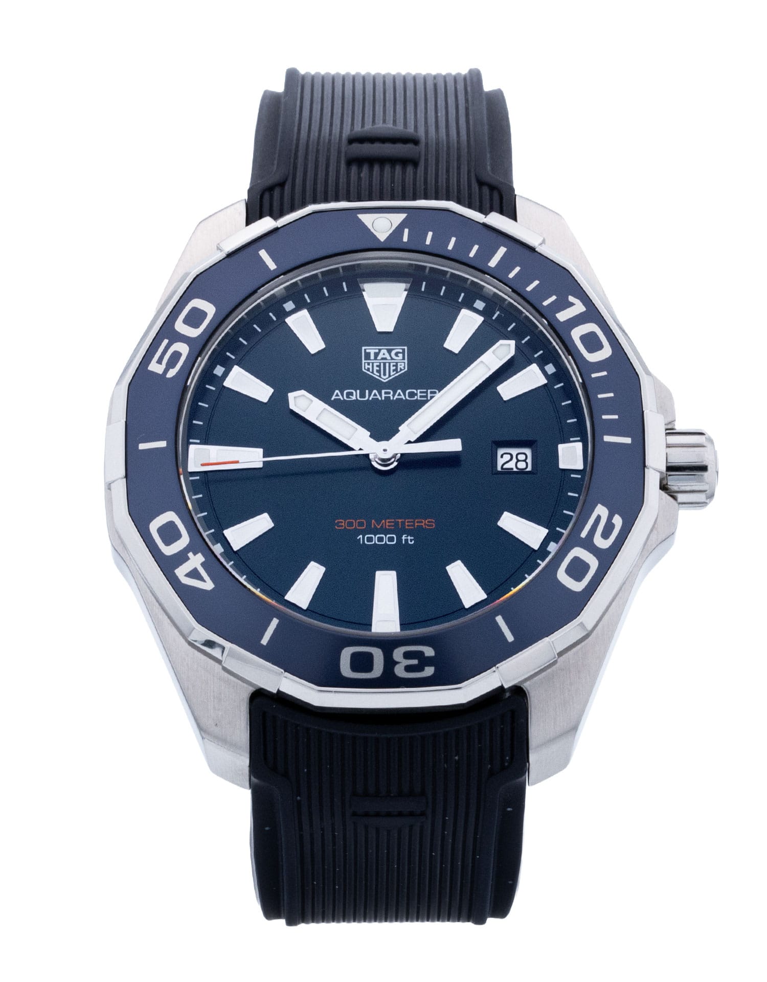 This Tag Heuer Aquaracer WAY101C.FT6153 has a blue baton dial and a rubber strap. This Tag Heuer has undergone a thorough inspection of accuracy, functionality and condition at our Tag Heuer certified service centre to determine the level of reconditioning required to meet our strict standards. It has also been checked against our records to ensure authenticity. All our watches have a 24-month warranty for your peace of mind.