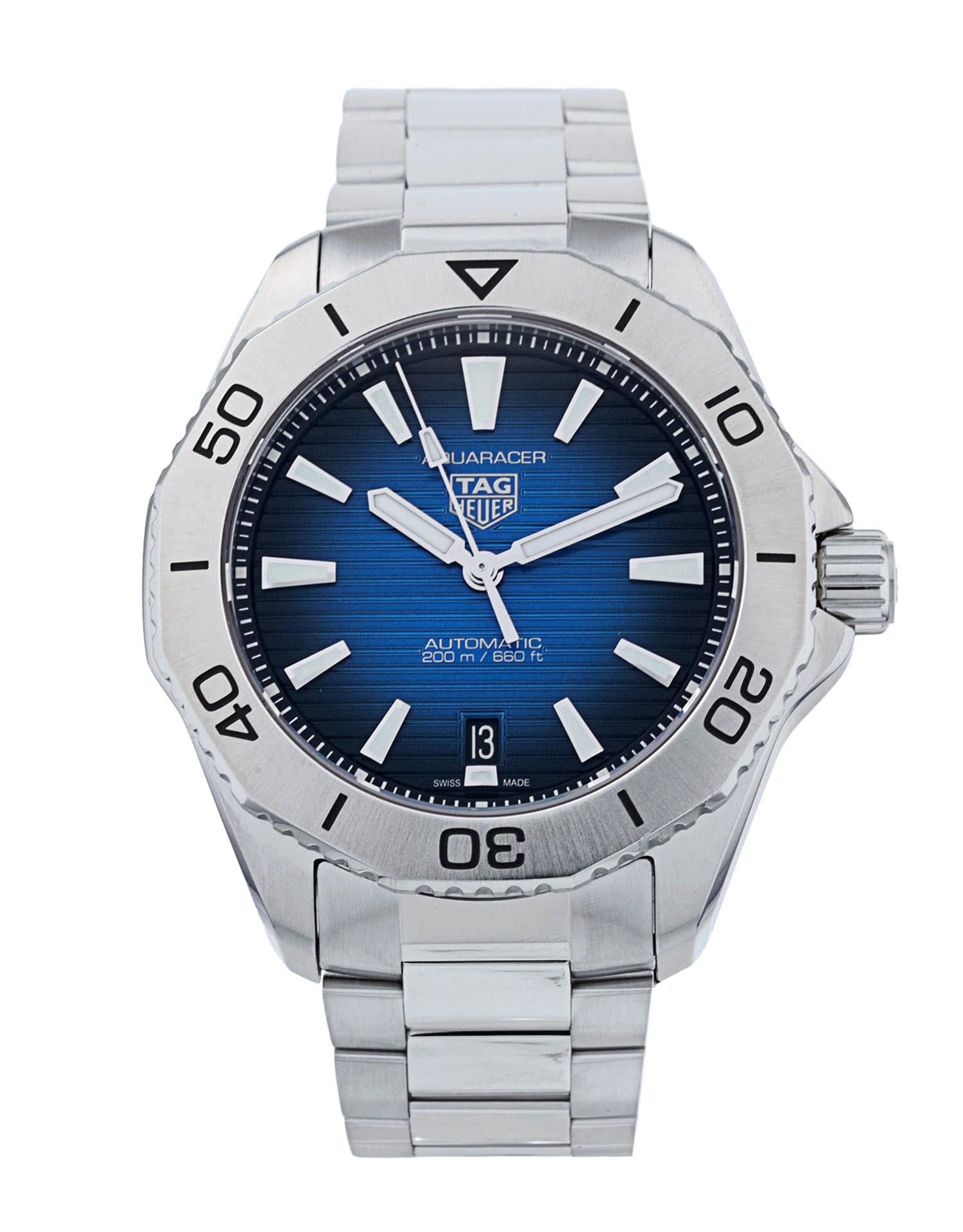 This Tag Heuer Aquaracer WBP2111.BA0627 has a blue baton dial and a bracelet strap. This Tag Heuer has undergone a thorough inspection of accuracy, functionality and condition at our Tag Heuer certified service centre to determine the level of reconditioning required to meet our strict standards. It has also been checked against our records to ensure authenticity. Our watches have a 24-month warranty for your peace of mind, in conjunction with any remaining manufacturer’s warranty from new or from service.