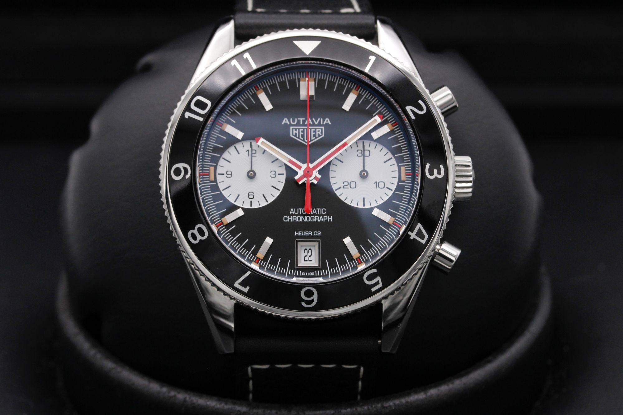 This Tag Heuer Autavia CBE2118.FC8246 has a black dial and a leather strap. This Tag Heuer has undergone a thorough inspection of accuracy, functionality and condition at our Tag Heuer certified service centre to determine the level of reconditioning required to meet our strict standards. It has also been checked against our records to ensure authenticity. All our watches have a 24-month warranty for your peace of mind.