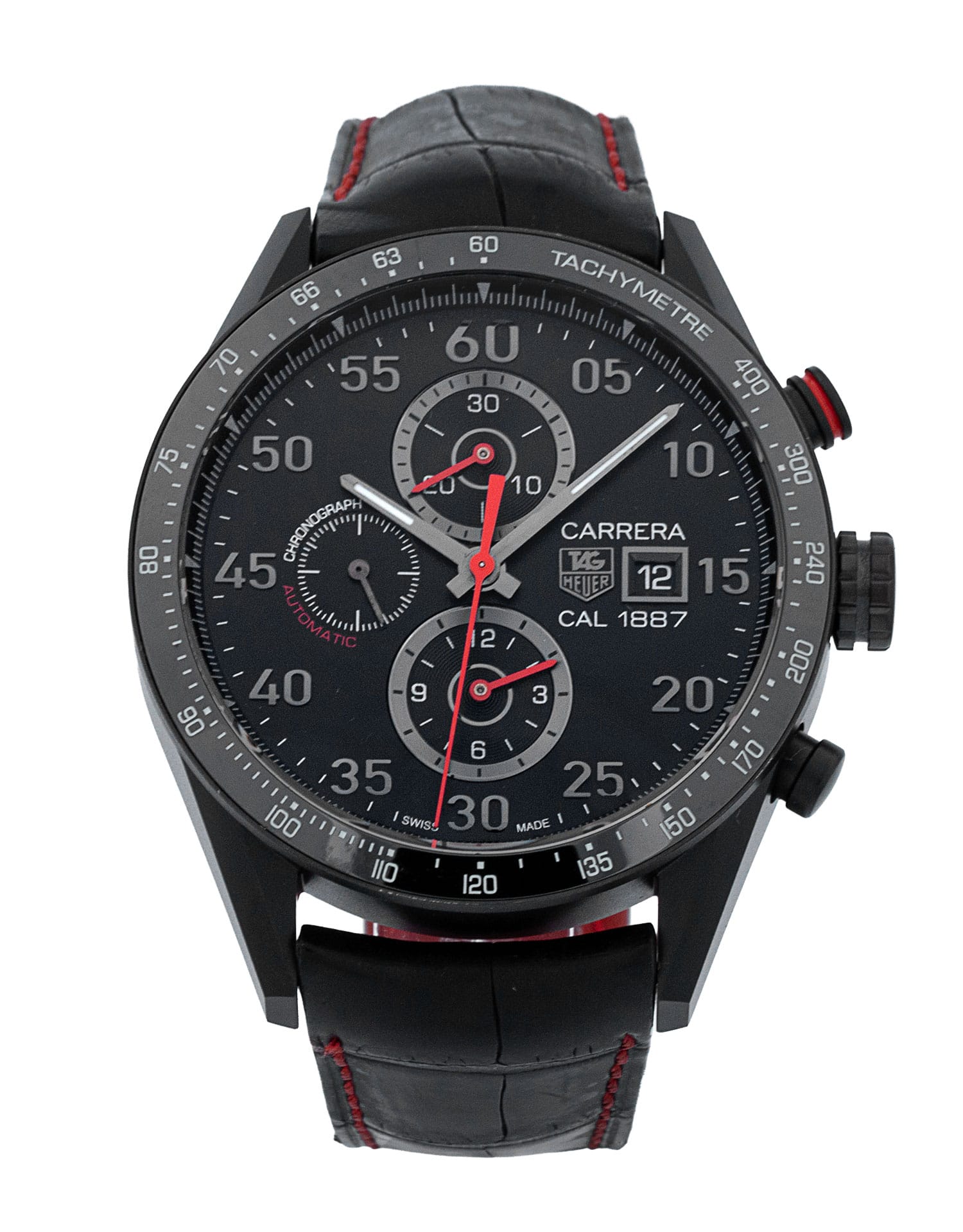 In watch form, the Carrera has been in existence since 1964, and continued Heuer’s great legacy in providing racing drivers with timing instruments. Named after the intense ‘Carrera Panamericana’ road race of the 1950’s (which also gave its name to the eponymous Porsche), the Carrera continues to provide timing for some of the world’s most prestigious racing teams today. This recent addition to the Carrera fold fully embodies that racing heritage with its black carbide titanium case, red highlights and ceramic bezel. The watch uses TAG's famous 1887 movement, a smooth column-wheel chronograph that features a modern version of the remarkable oscillating pinion first patented by the brand in 1887.