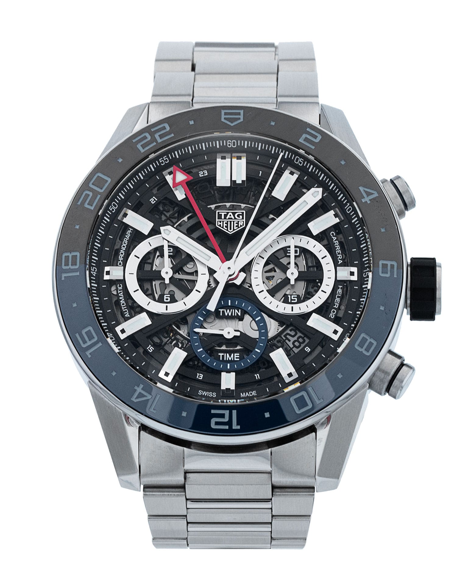 This Tag Heuer Carrera CBG2A1Z.BA0658 has a skeleton dial and a bracelet strap. This Tag Heuer has undergone a thorough inspection of accuracy, functionality and condition at our Tag Heuer certified service centre to determine the level of reconditioning required to meet our strict standards. It has also been checked against our records to ensure authenticity. Our watches have a 24-month warranty for your peace of mind, in conjunction with any remaining manufacturer’s warranty from new or from service.