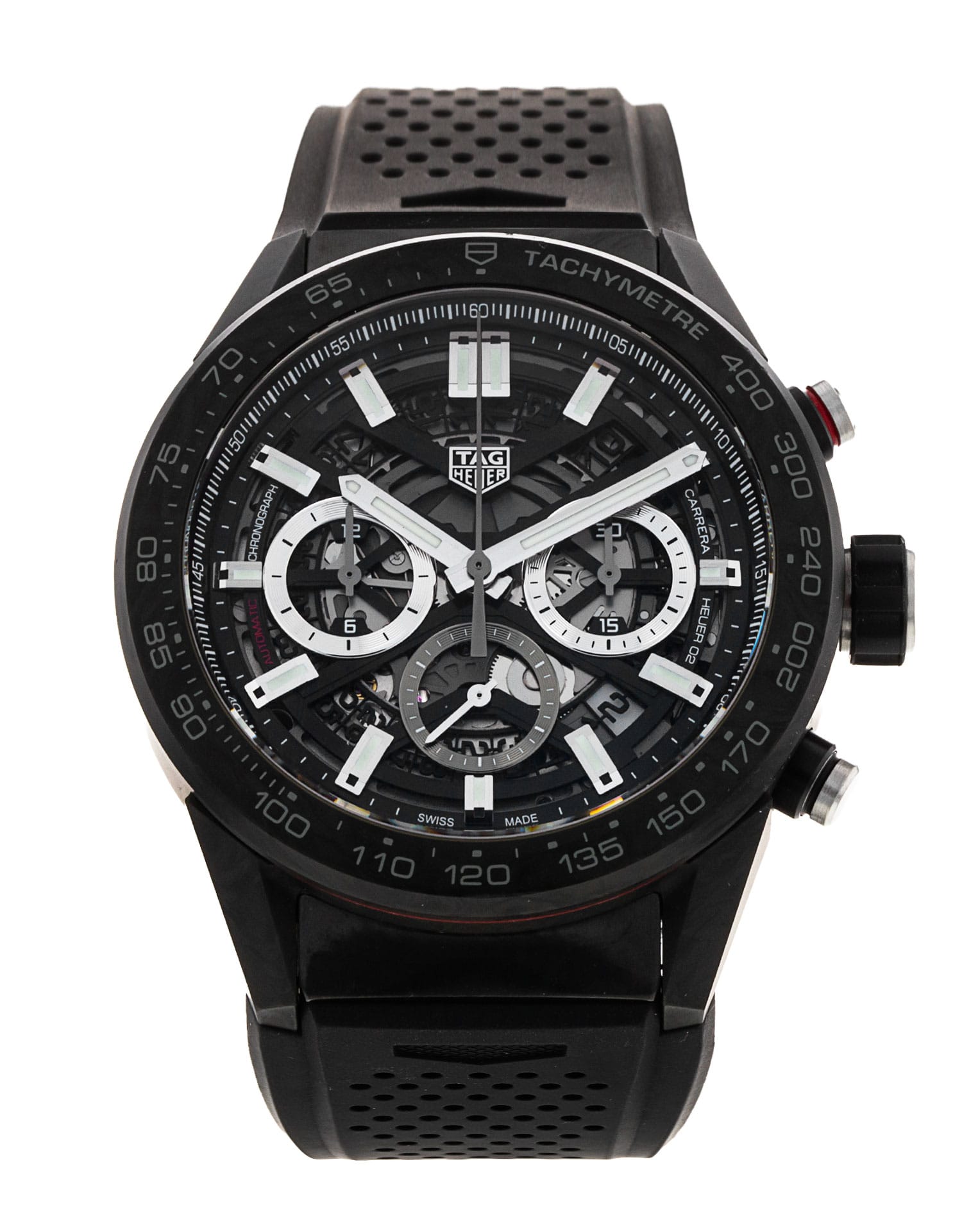 This Tag Heuer Carrera CBG2A91.FT6173 has a skeleton dial and a rubber strap. This Tag Heuer has undergone a thorough inspection of accuracy, functionality and condition at our Tag Heuer certified service centre to determine the level of reconditioning required to meet our strict standards. It has also been checked against our records to ensure authenticity. All our watches have a 24-month warranty for your peace of mind.