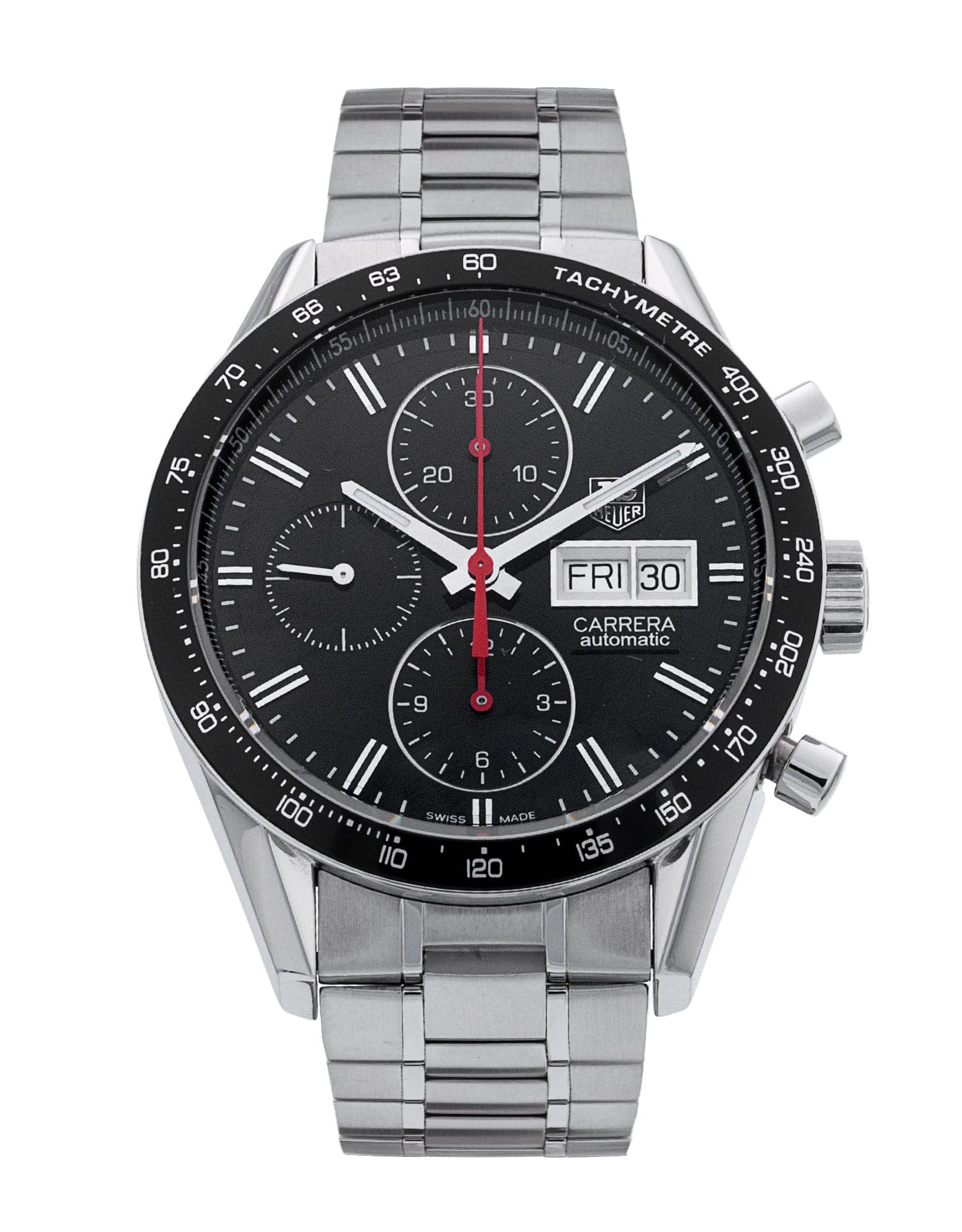 This Tag Heuer Carrera CV2014.BA0794 has a black baton dial and a bracelet strap. This Tag Heuer has undergone a thorough inspection of accuracy, functionality and condition at our Tag Heuer certified service centre to determine the level of reconditioning required to meet our strict standards. It has also been checked against our records to ensure authenticity. All our watches have a 24-month warranty for your peace of mind.