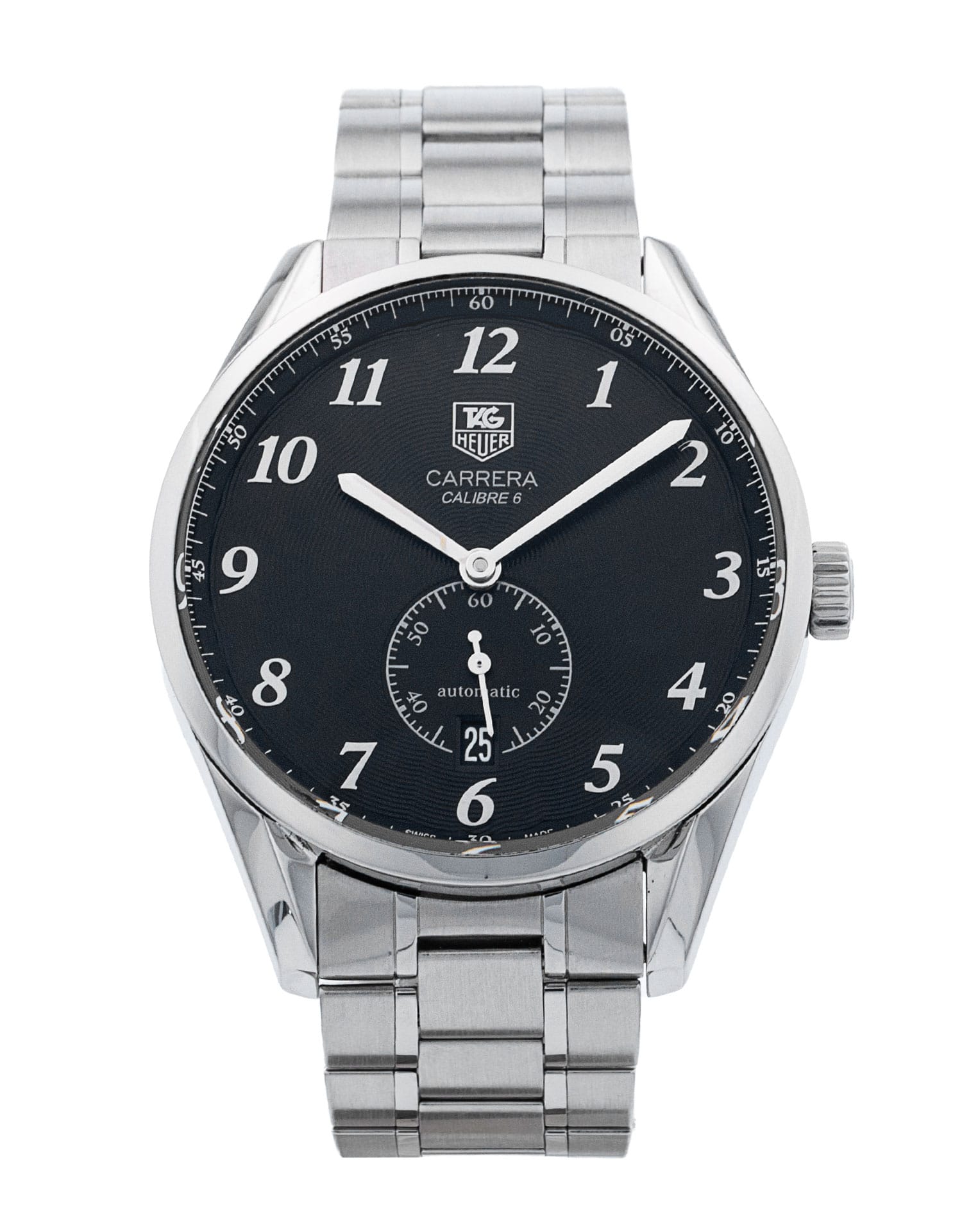 This Tag Heuer Carrera WAS2110.BA0732 has a black arabic dial and a bracelet strap. This Tag Heuer has undergone a thorough inspection of accuracy, functionality and condition at our Tag Heuer certified service centre to determine the level of reconditioning required to meet our strict standards. It has also been checked against our records to ensure authenticity. All our watches have a 24-month warranty for your peace of mind.