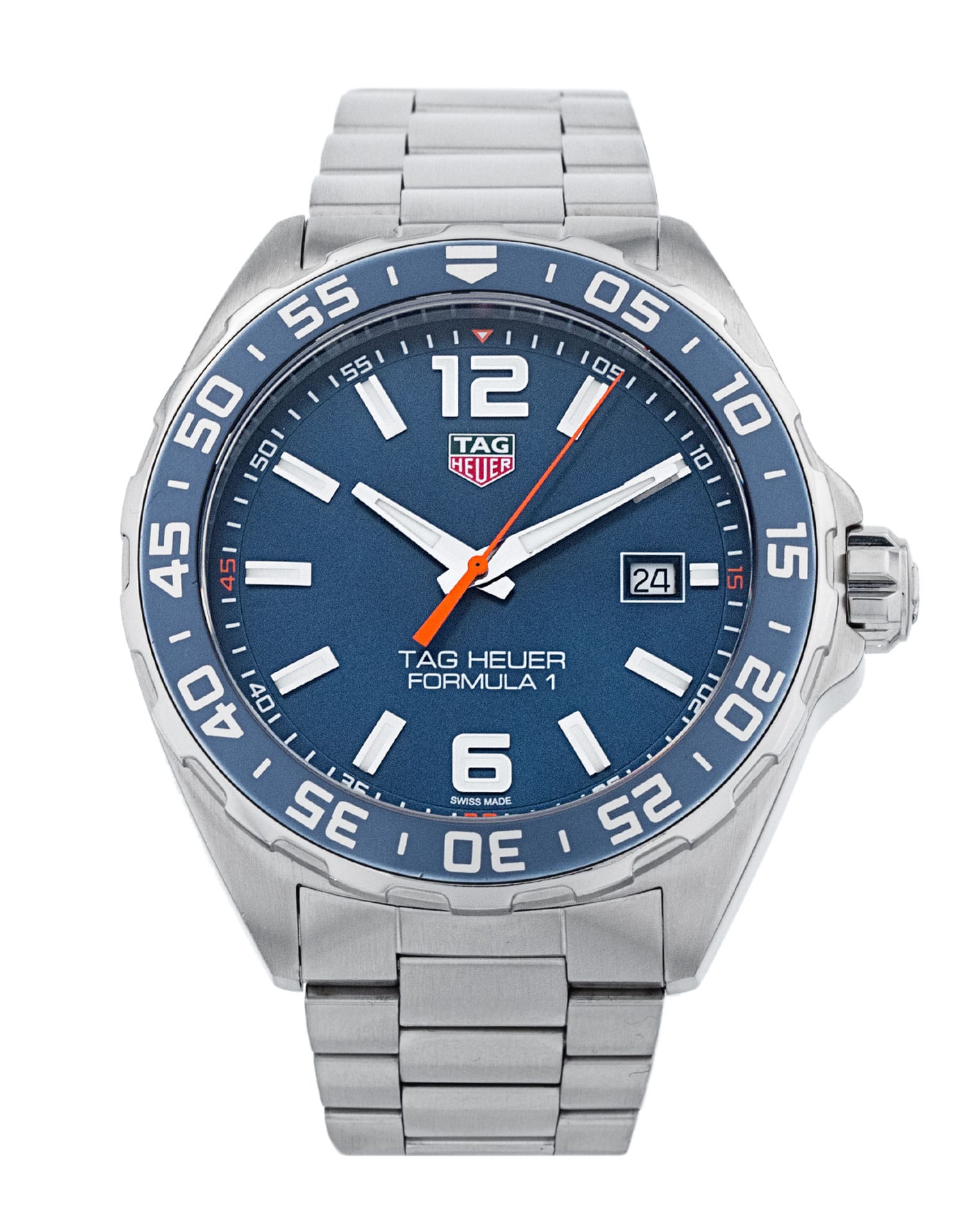 This Tag Heuer Formula 1 WAZ1010.BA0842 has a blue baton dial and a bracelet strap. This Tag Heuer has undergone a thorough inspection of accuracy, functionality and condition at our Tag Heuer certified service centre to determine the level of reconditioning required to meet our strict standards. It has also been checked against our records to ensure authenticity. All our watches have a 24-month warranty for your peace of mind.