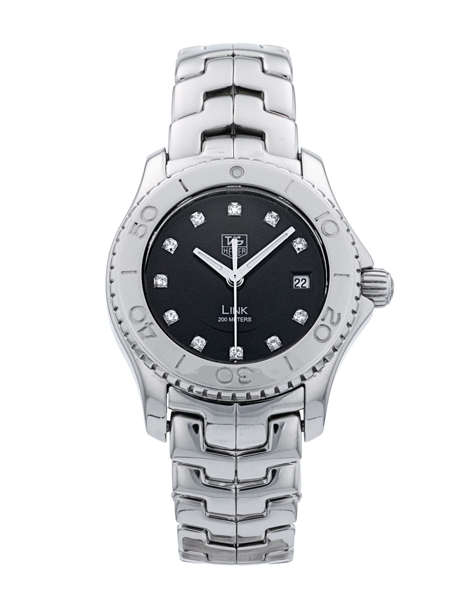 This Tag Heuer Link WJ1318.BA0572 has a black diamond dial and a bracelet strap. This Tag Heuer has undergone a thorough inspection of accuracy, functionality and condition at our Tag Heuer certified service centre to determine the level of reconditioning required to meet our strict standards. It has also been checked against our records to ensure authenticity. All our watches have a 24-month warranty for your peace of mind.