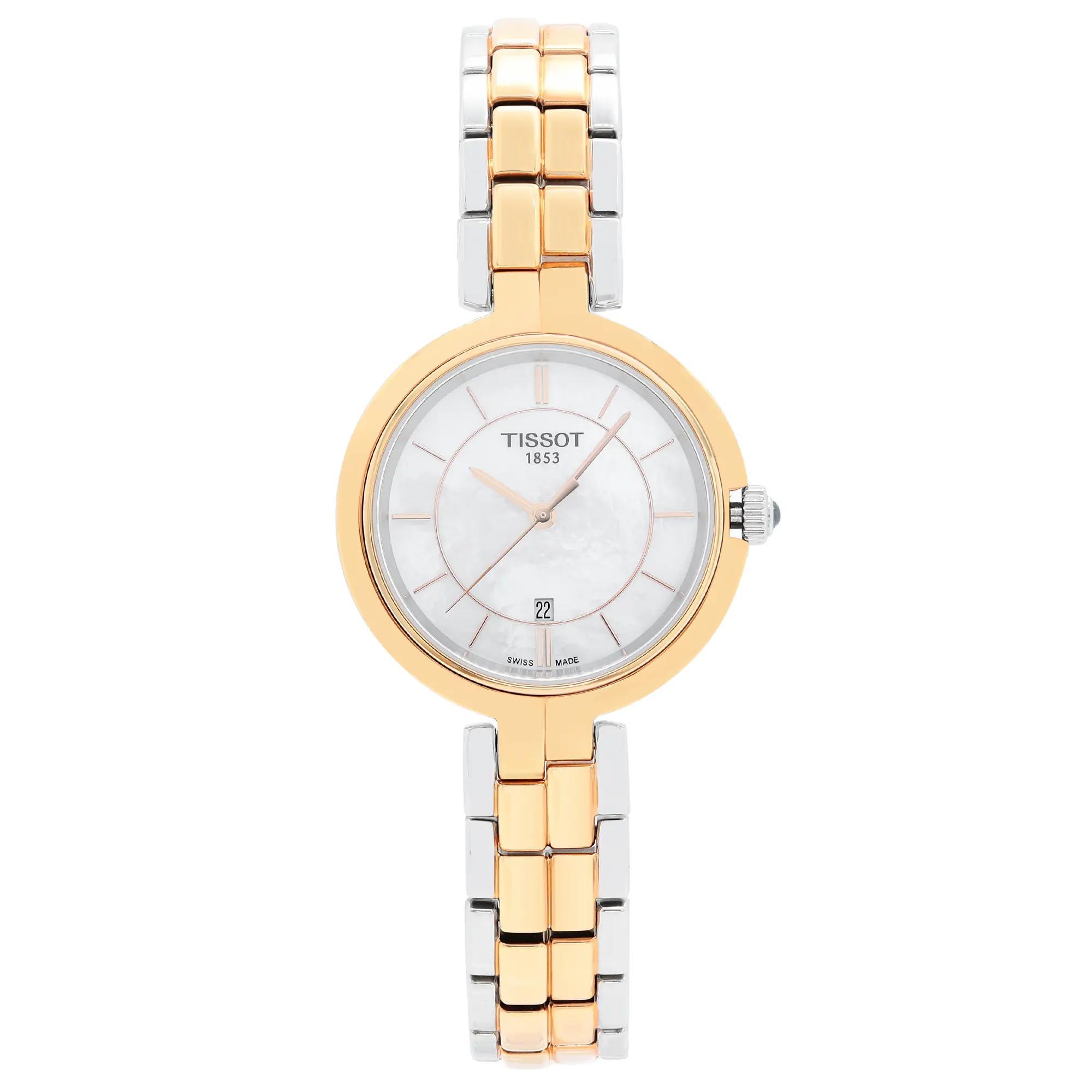 This Tissot Flamingo T094.210.22.111.01 has a mother of pearl white dial and a bracelet strap. This Tissot has undergone a thorough inspection of water resistance, accuracy, functionality and condition to determine the level of reconditioning required to meet our strict standards. It has also been referenced against technical documents and manufacturer records where available to ensure authenticity and a clean history. All our watches have a 24-month warranty for your peace of mind.