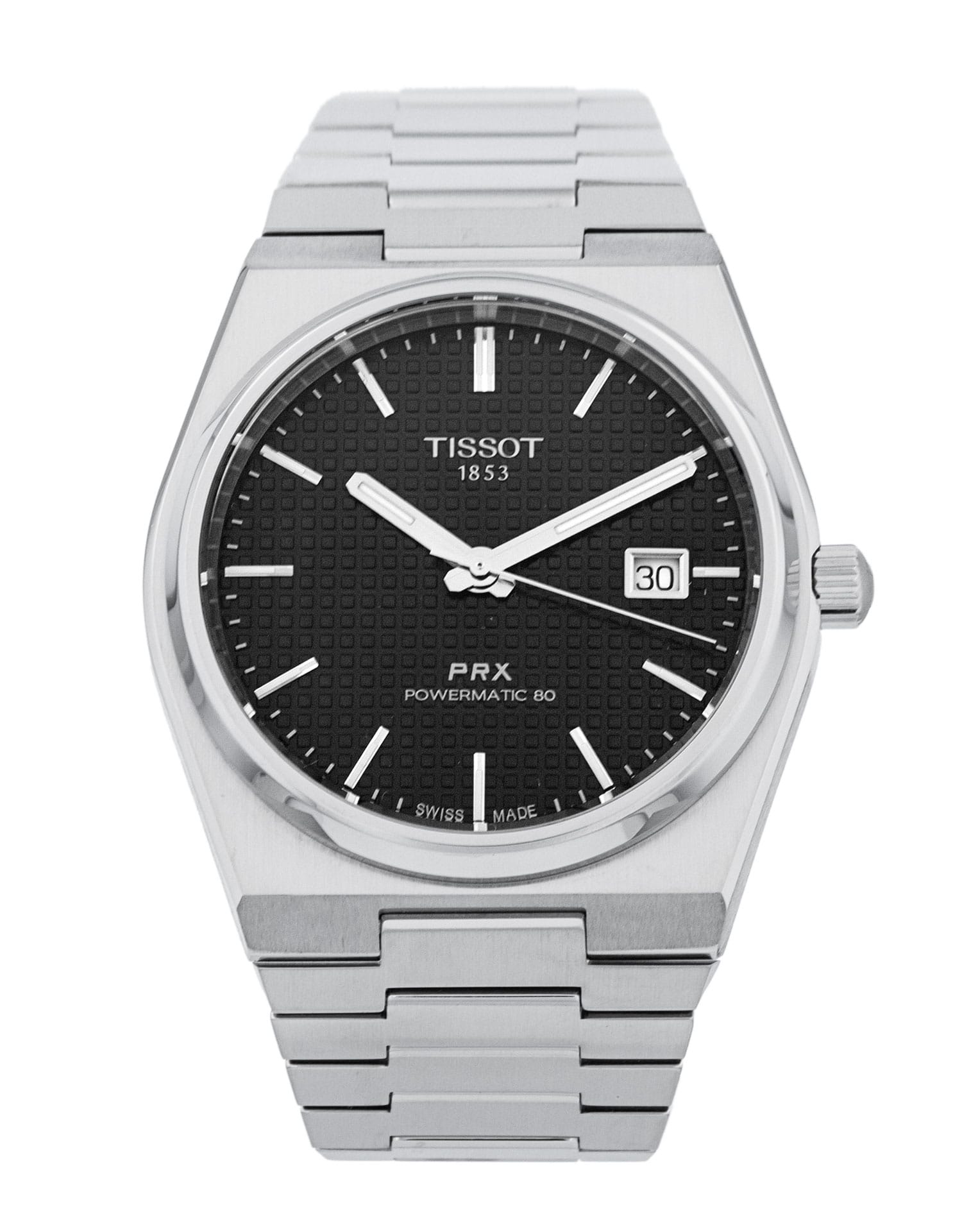 This Tissot PRX T137.407.11.051.00 has a black baton dial and a bracelet strap. This Tissot has undergone a thorough inspection of water resistance, accuracy, functionality and condition to determine the level of reconditioning required to meet our strict standards. It has also been referenced against technical documents and manufacturer records where available to ensure authenticity and a clean history. All our watches have a 24-month warranty for your peace of mind.