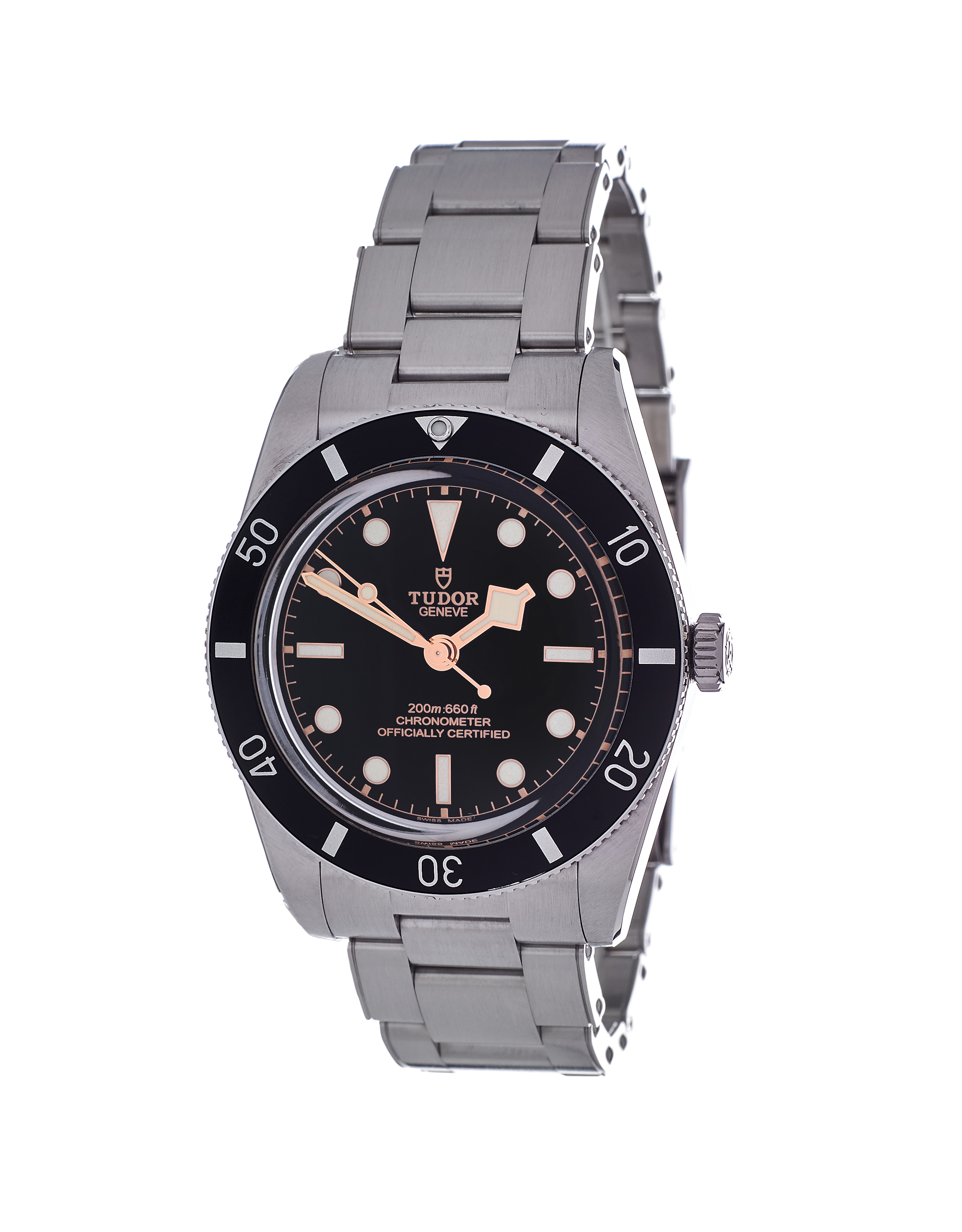 This Tudor Black Bay 54 M79000N-0001 has a black dial and a bracelet strap. This Tudor has undergone a thorough inspection of water resistance, accuracy, functionality and condition to determine the level of reconditioning required to meet our strict standards. It has also been referenced against technical documents and manufacturer records where available to ensure authenticity and a clean history. Our watches have a 24-month warranty for your peace of mind, in conjunction with any remaining manufacturer’s warranty from new or from service. To maintain the manufacturer’s warranty on this watch, it has not been polished in our service centre.