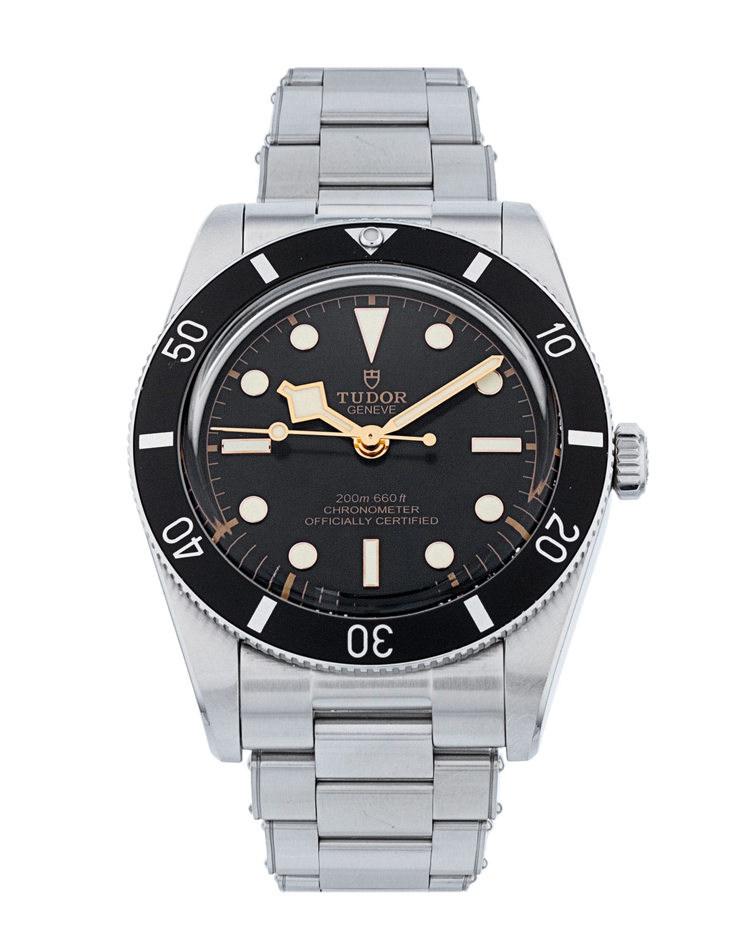 This Tudor Black Bay 54 M79000N-0001 has a black dial and a bracelet strap. This Tudor has undergone a thorough inspection of water resistance, accuracy, functionality and condition to determine the level of reconditioning required to meet our strict standards. It has also been referenced against technical documents and manufacturer records where available to ensure authenticity and a clean history. Our watches have a 24-month warranty for your peace of mind, in conjunction with any remaining manufacturer’s warranty from new or from service. To maintain the manufacturer’s warranty on this watch, it has not been polished in our service centre.