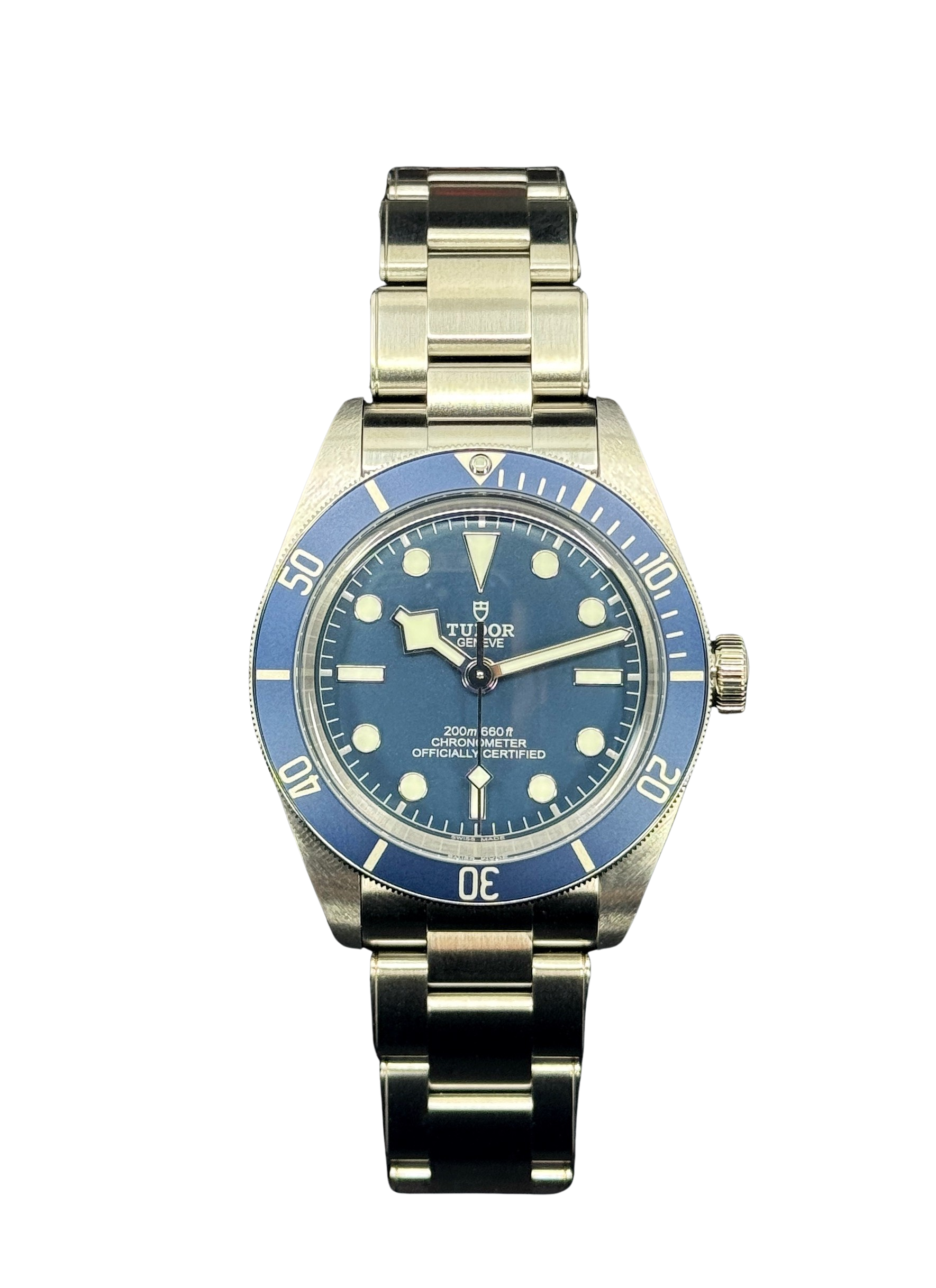 This Tudor Black Bay 58 M79030B-0001 has a blue dial and a bracelet strap. This Tudor has undergone a thorough inspection of water resistance, accuracy, functionality and condition to determine the level of reconditioning required to meet our strict standards. It has also been referenced against technical documents and manufacturer records where available to ensure authenticity and a clean history. Our watches have a 24-month warranty for your peace of mind, in conjunction with any remaining manufacturer’s warranty from new or from service. To maintain the manufacturer’s warranty on this watch, it has not been polished in our service centre.