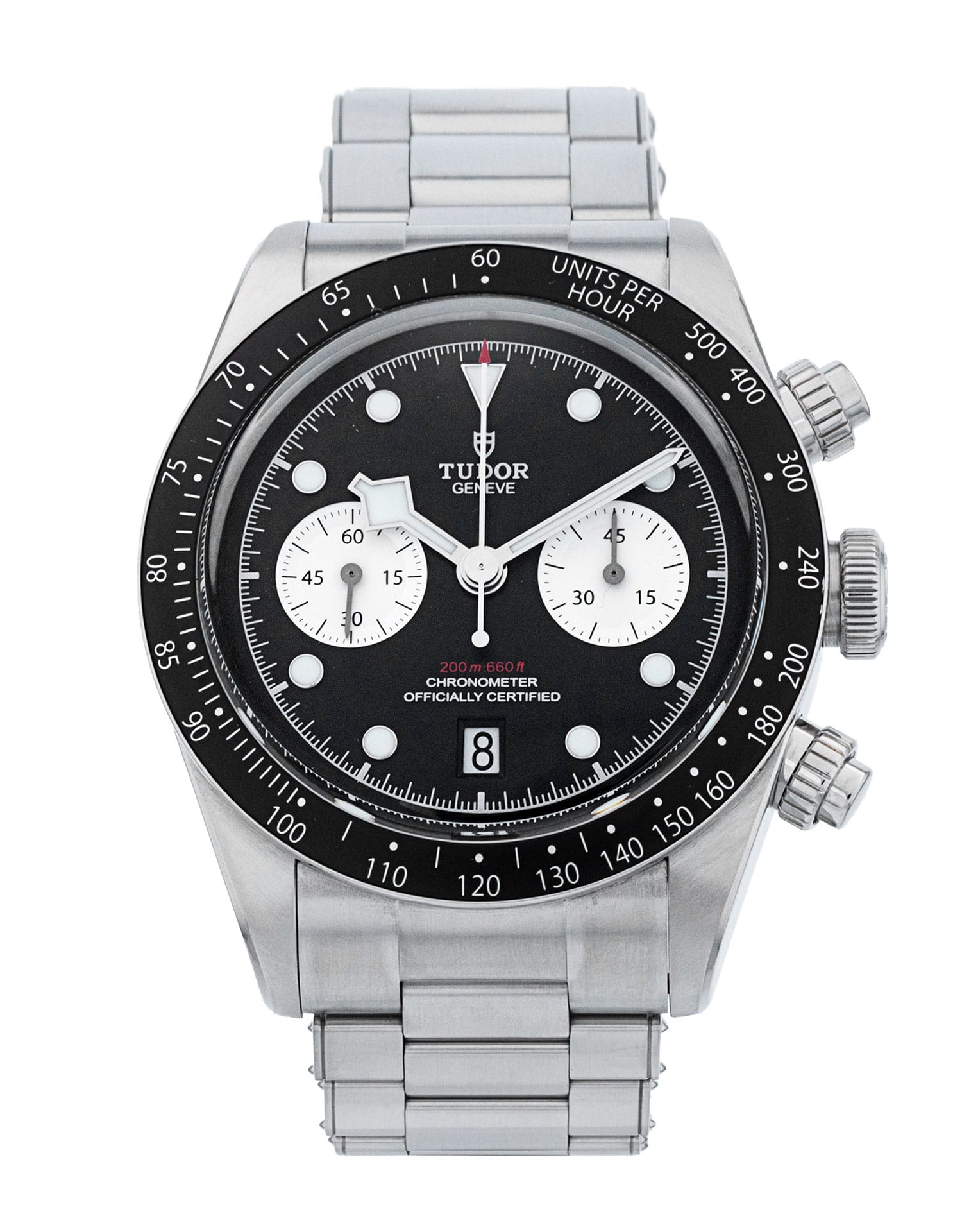 This Tudor Black Bay Chrono M79360N-0001 has a black dial and a bracelet strap. This Tudor has undergone a thorough inspection of water resistance, accuracy, functionality and condition to determine the level of reconditioning required to meet our strict standards. It has also been referenced against technical documents and manufacturer records where available to ensure authenticity and a clean history. Our watches have a 24-month warranty for your peace of mind, in conjunction with any remaining manufacturer’s warranty from new or from service. To maintain the manufacturer’s warranty on this watch, it has not been polished in our service centre.