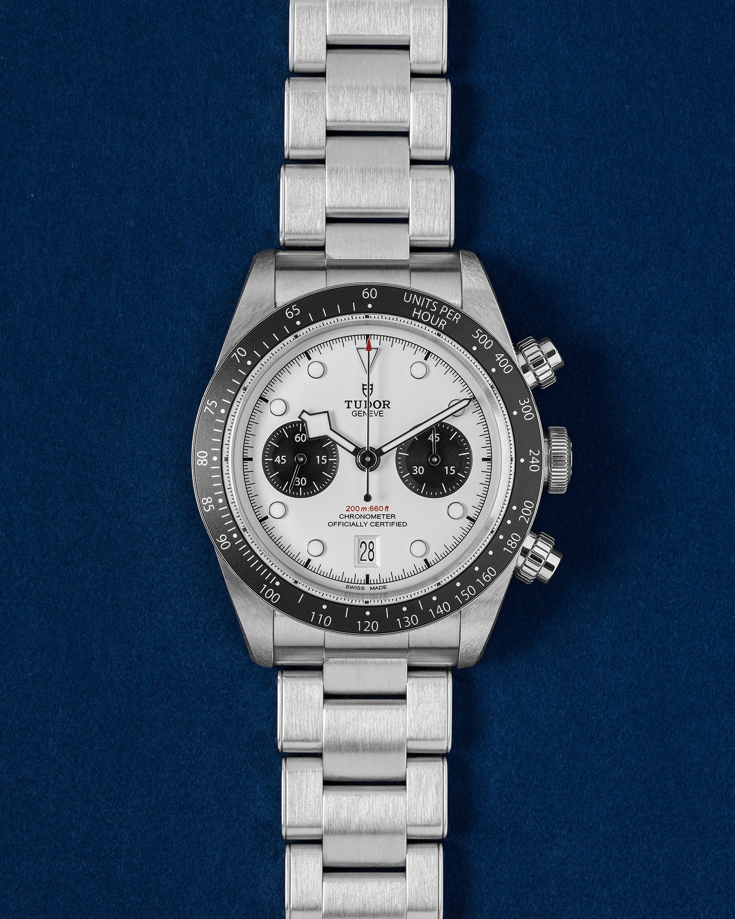 This Tudor Black Bay Chrono M79360N-0002 has a white dial and a bracelet strap. This Tudor has undergone a thorough inspection of water resistance, accuracy, functionality and condition to determine the level of reconditioning required to meet our strict standards. It has also been referenced against technical documents and manufacturer records where available to ensure authenticity and a clean history. Our watches have a 24-month warranty for your peace of mind, in conjunction with any remaining manufacturer’s warranty from new or from service. To maintain the manufacturer’s warranty on this watch, it has not been polished in our service centre.
