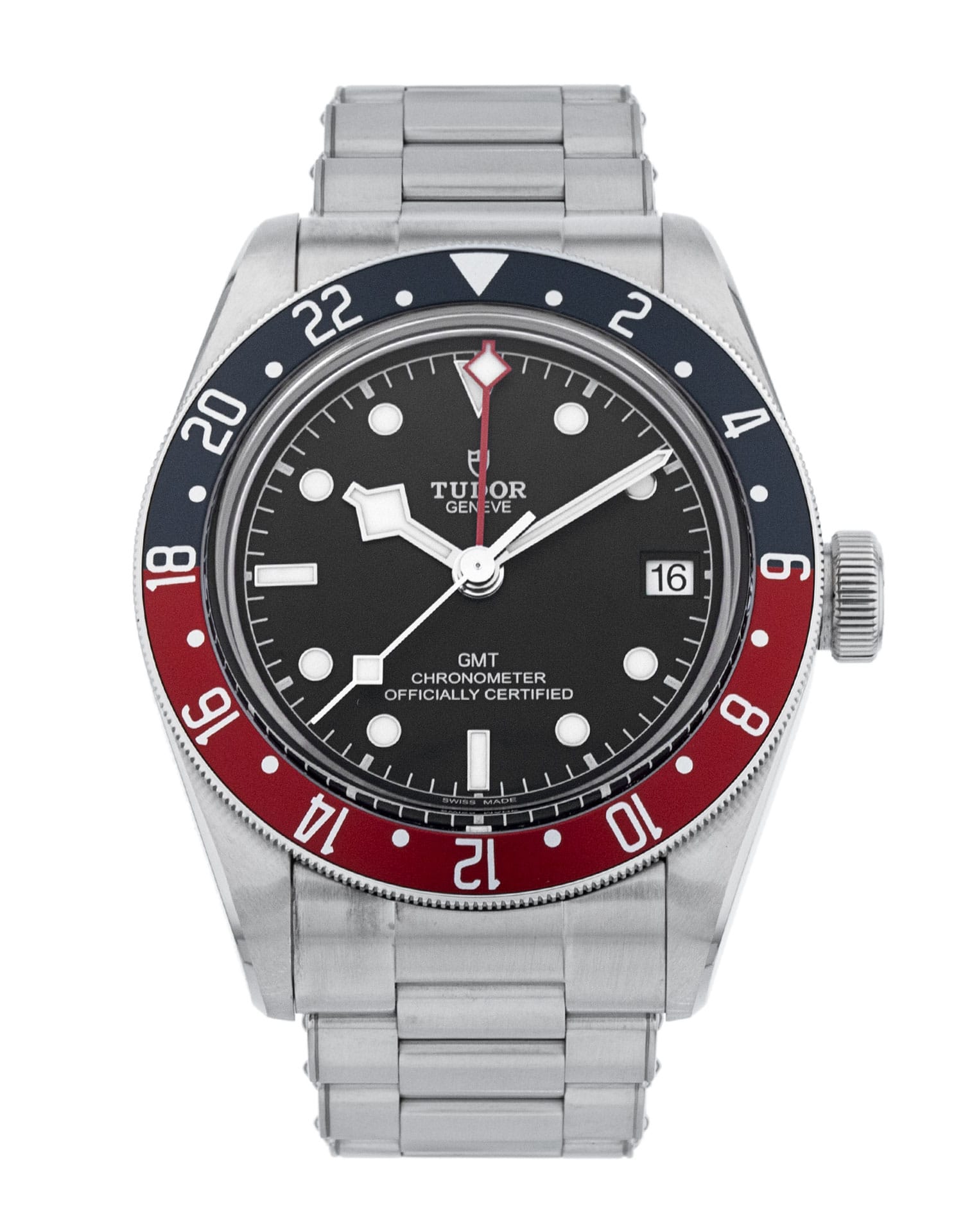 This Tudor Black Bay GMT M79830RB-0001 has a black dial and a bracelet strap. This Tudor has undergone a thorough inspection of water resistance, accuracy, functionality and condition to determine the level of reconditioning required to meet our strict standards. It has also been referenced against technical documents and manufacturer records where available to ensure authenticity and a clean history. All our watches have a 24-month warranty for your peace of mind. One of our skilled polishing technicians has removed marks on the case and bracelet of this watch, brought about by daily wear and tear, which is why this watch does not come with the remaining manufacturer’s warranty.