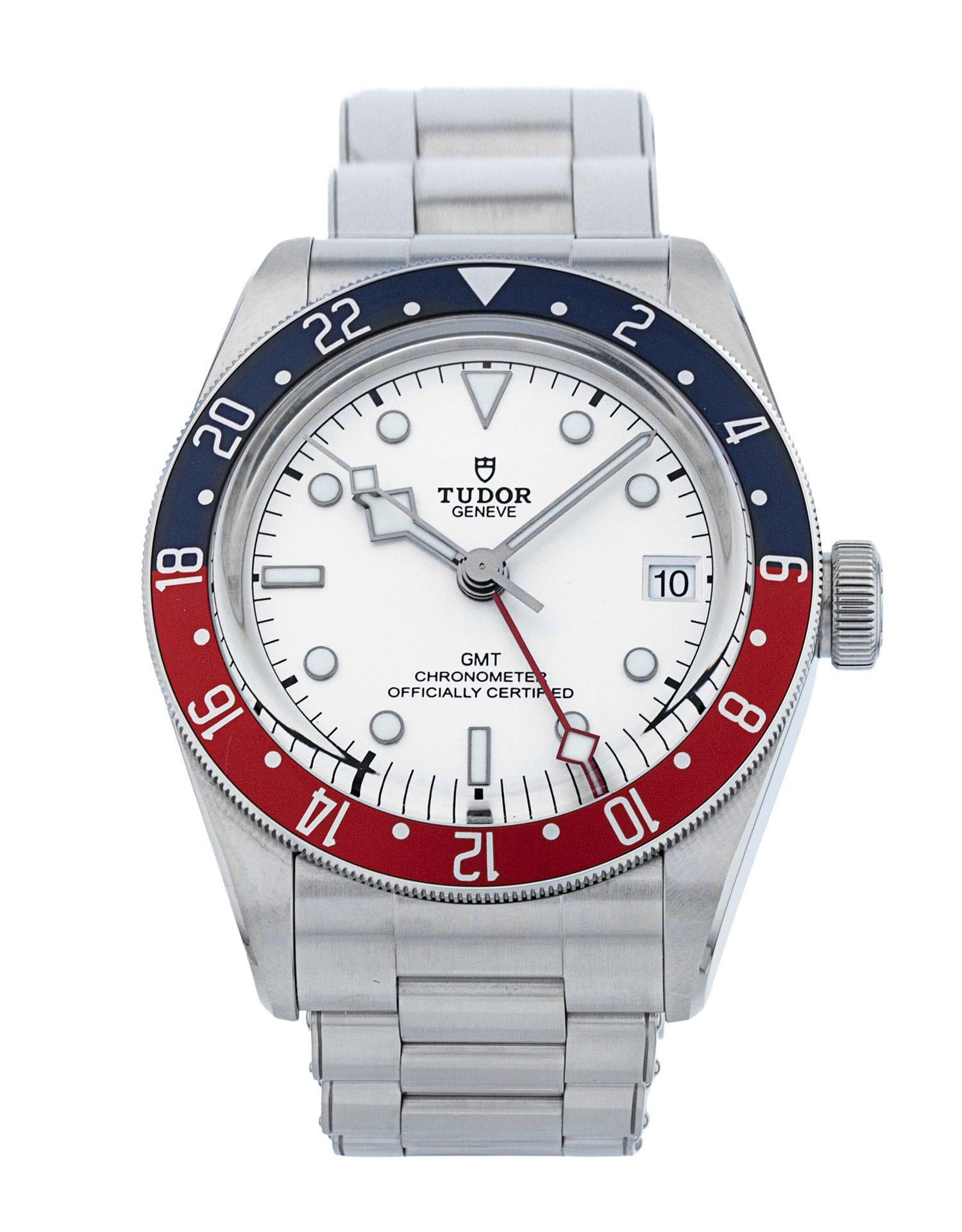 This Tudor Black Bay GMT M79830RB-0010 has a opaline dial and a bracelet strap. This Tudor has undergone a thorough inspection of water resistance, accuracy, functionality and condition to determine the level of reconditioning required to meet our strict standards. It has also been referenced against technical documents and manufacturer records where available to ensure authenticity and a clean history. Our watches have a 24-month warranty for your peace of mind, in conjunction with any remaining manufacturer’s warranty from new or from service. To maintain the manufacturer’s warranty on this watch, it has not been polished in our service centre.