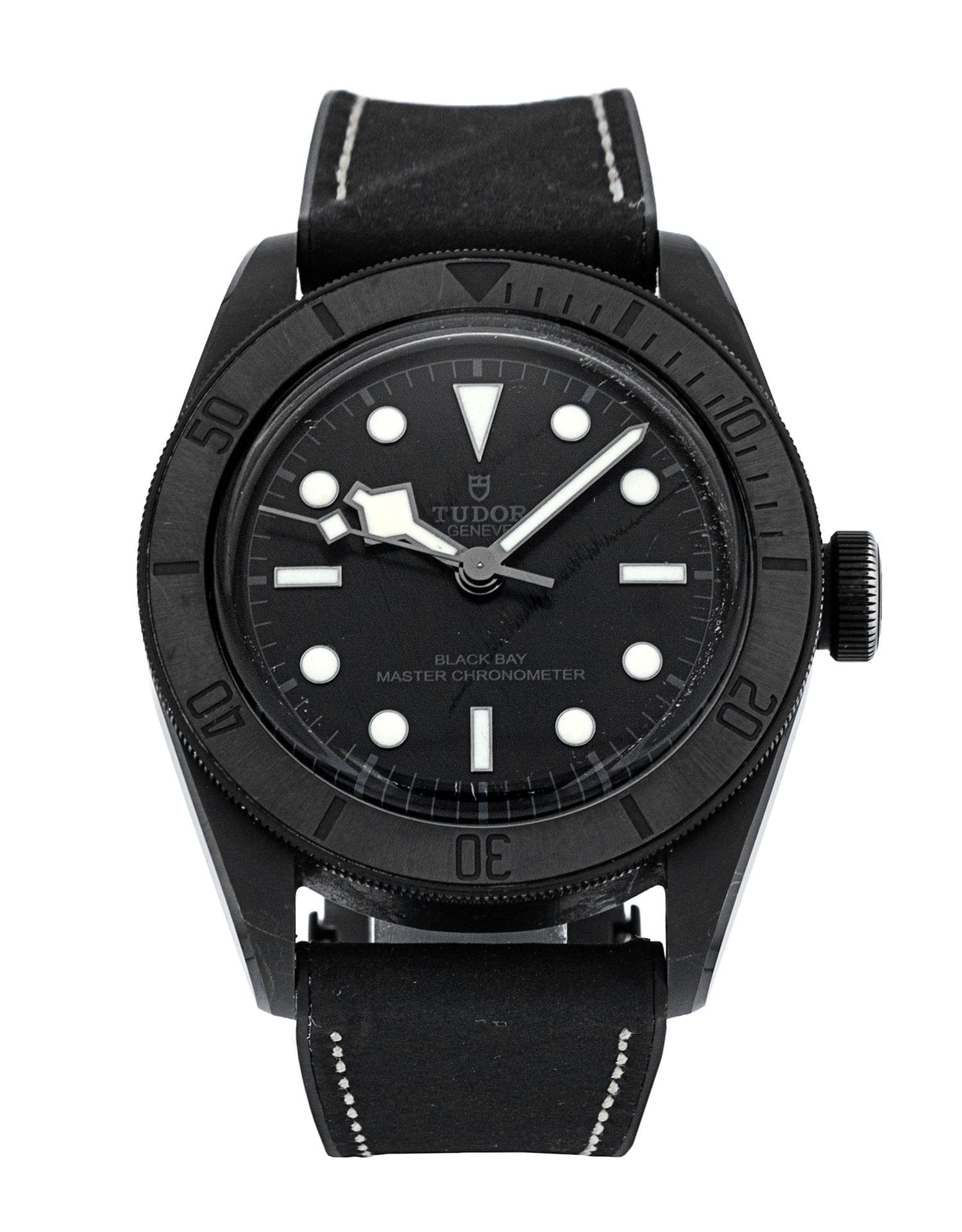 This Tudor Black Bay M79210CNU-0001 has a black dial and a leather strap. This Tudor has undergone a thorough inspection of water resistance, accuracy, functionality and condition to determine the level of reconditioning required to meet our strict standards. It has also been referenced against technical documents and manufacturer records where available to ensure authenticity and a clean history. All our watches have a 24-month warranty for your peace of mind. One of our skilled polishing technicians has removed marks on the case and bracelet of this watch, brought about by daily wear and tear, which is why this watch does not come with the remaining manufacturer’s warranty.