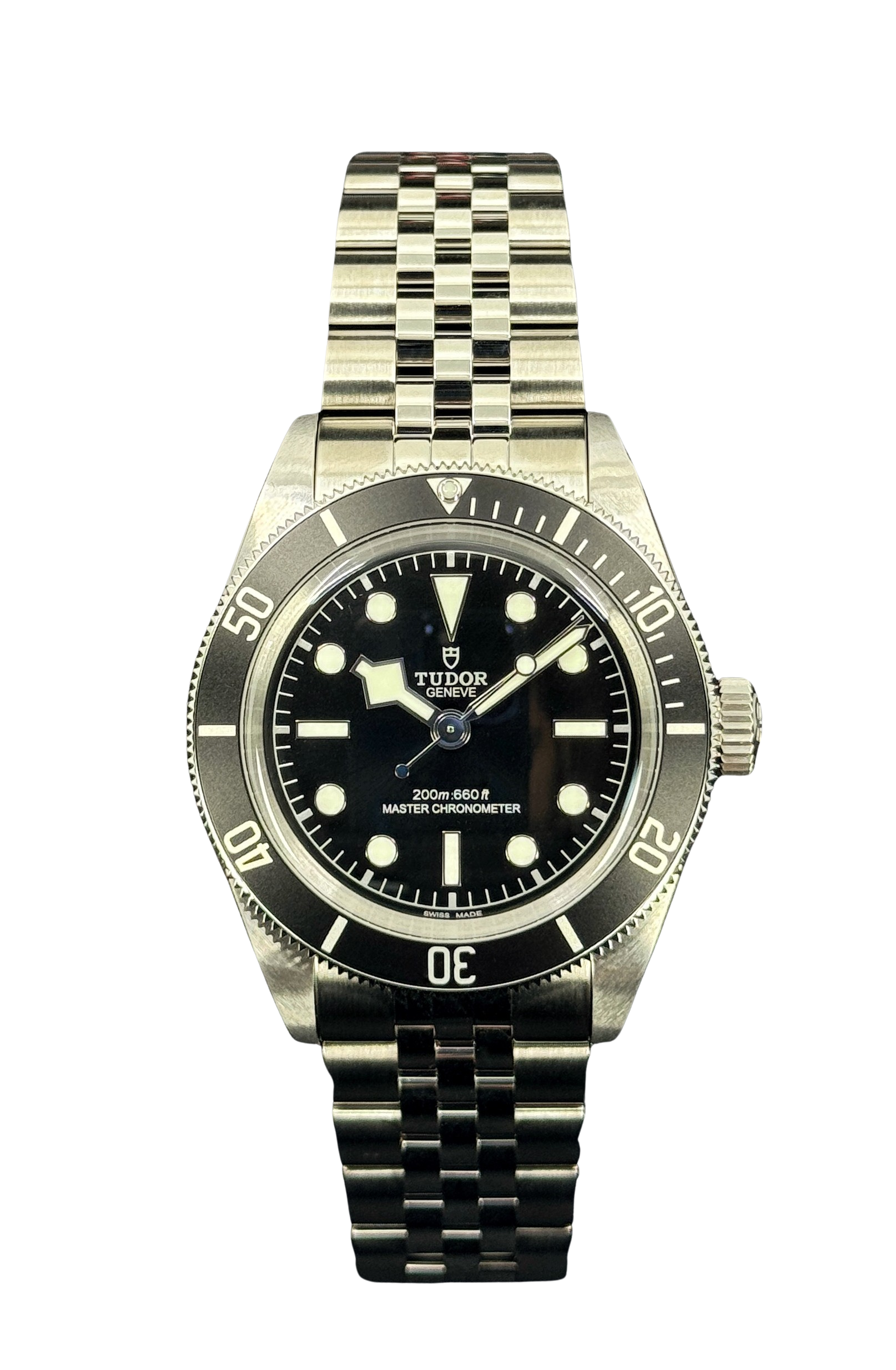 This Tudor Black Bay M7941A1A0NU-0003 has a black dial and a bracelet strap. This Tudor has undergone a thorough inspection of water resistance, accuracy, functionality and condition to determine the level of reconditioning required to meet our strict standards. It has also been referenced against technical documents and manufacturer records where available to ensure authenticity and a clean history. Our watches have a 24-month warranty for your peace of mind, in conjunction with any remaining manufacturer’s warranty from new or from service. To maintain the manufacturer’s warranty on this watch, it has not been polished in our service centre.
