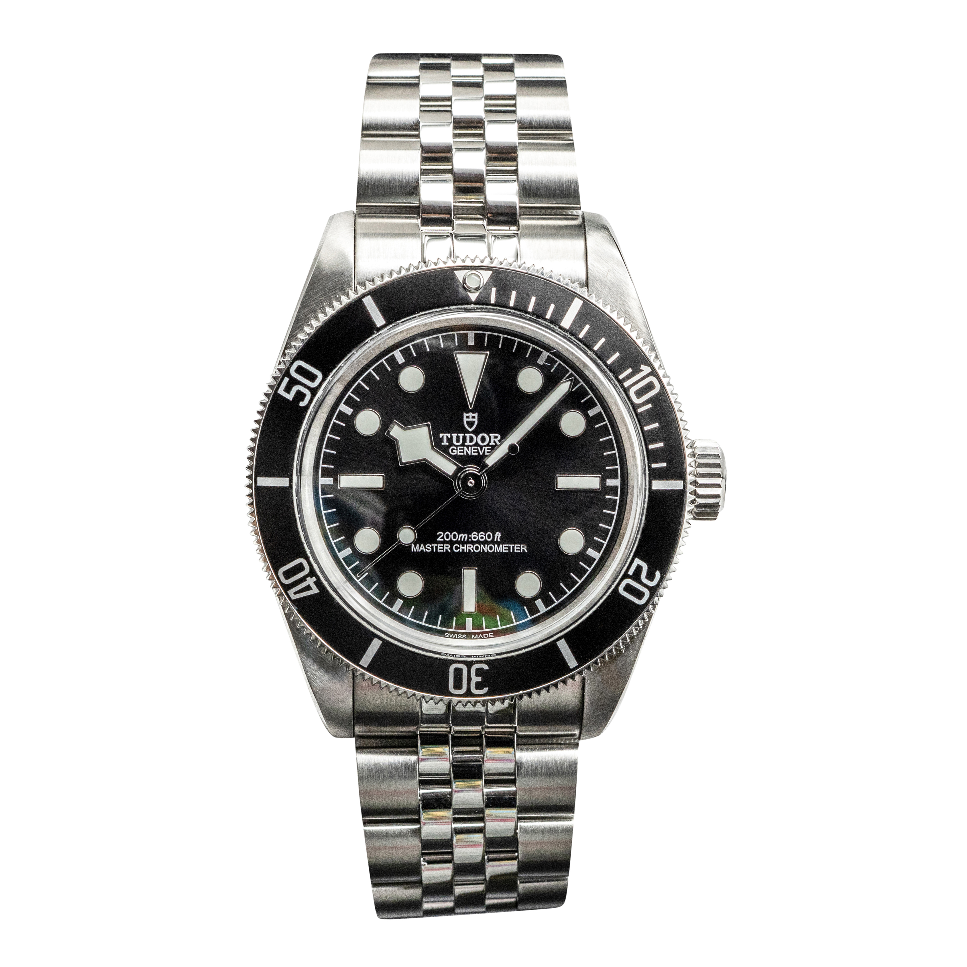 This Tudor Black Bay M7941A1A0NU-0003 has a black dial and a bracelet strap. This Tudor has undergone a thorough inspection of water resistance, accuracy, functionality and condition to determine the level of reconditioning required to meet our strict standards. It has also been referenced against technical documents and manufacturer records where available to ensure authenticity and a clean history. All our watches have a 24-month warranty for your peace of mind. One of our skilled polishing technicians has removed marks on the case and bracelet of this watch, brought about by daily wear and tear, which is why this watch does not come with the remaining manufacturer’s warranty.