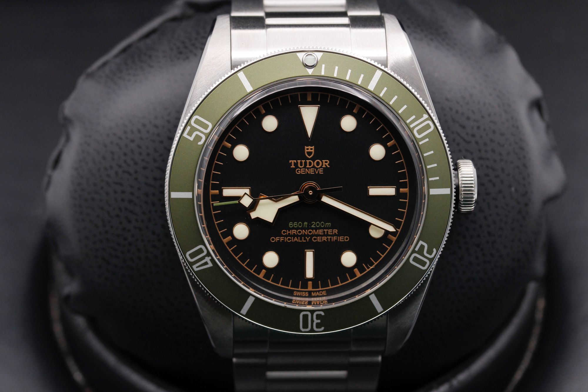 This Tudor Heritage Black Bay 79230G has a black dial and a bracelet strap. This Tudor has undergone a thorough inspection of water resistance, accuracy, functionality and condition to determine the level of reconditioning required to meet our strict standards. It has also been referenced against technical documents and manufacturer records where available to ensure authenticity and a clean history. All our watches have a 24-month warranty for your peace of mind. One of our skilled polishing technicians has removed marks on the case and bracelet of this watch, brought about by daily wear and tear, which is why this watch does not come with the remaining manufacturer’s warranty.