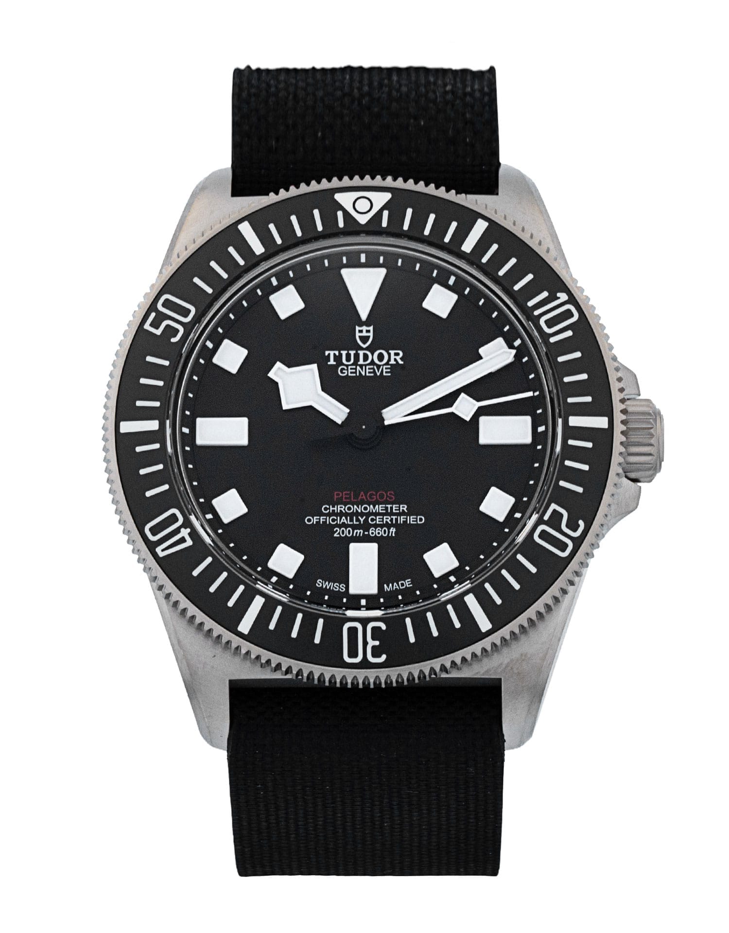 This Tudor Pelagos FXD M25717N-0001 has a black dial and a fabric strap. This Tudor has undergone a thorough inspection of water resistance, accuracy, functionality and condition to determine the level of reconditioning required to meet our strict standards. It has also been referenced against technical documents and manufacturer records where available to ensure authenticity and a clean history. Our watches have a 24-month warranty for your peace of mind, in conjunction with any remaining manufacturer’s warranty from new or from service. To maintain the manufacturer’s warranty on this watch, it has not been polished in our service centre.
