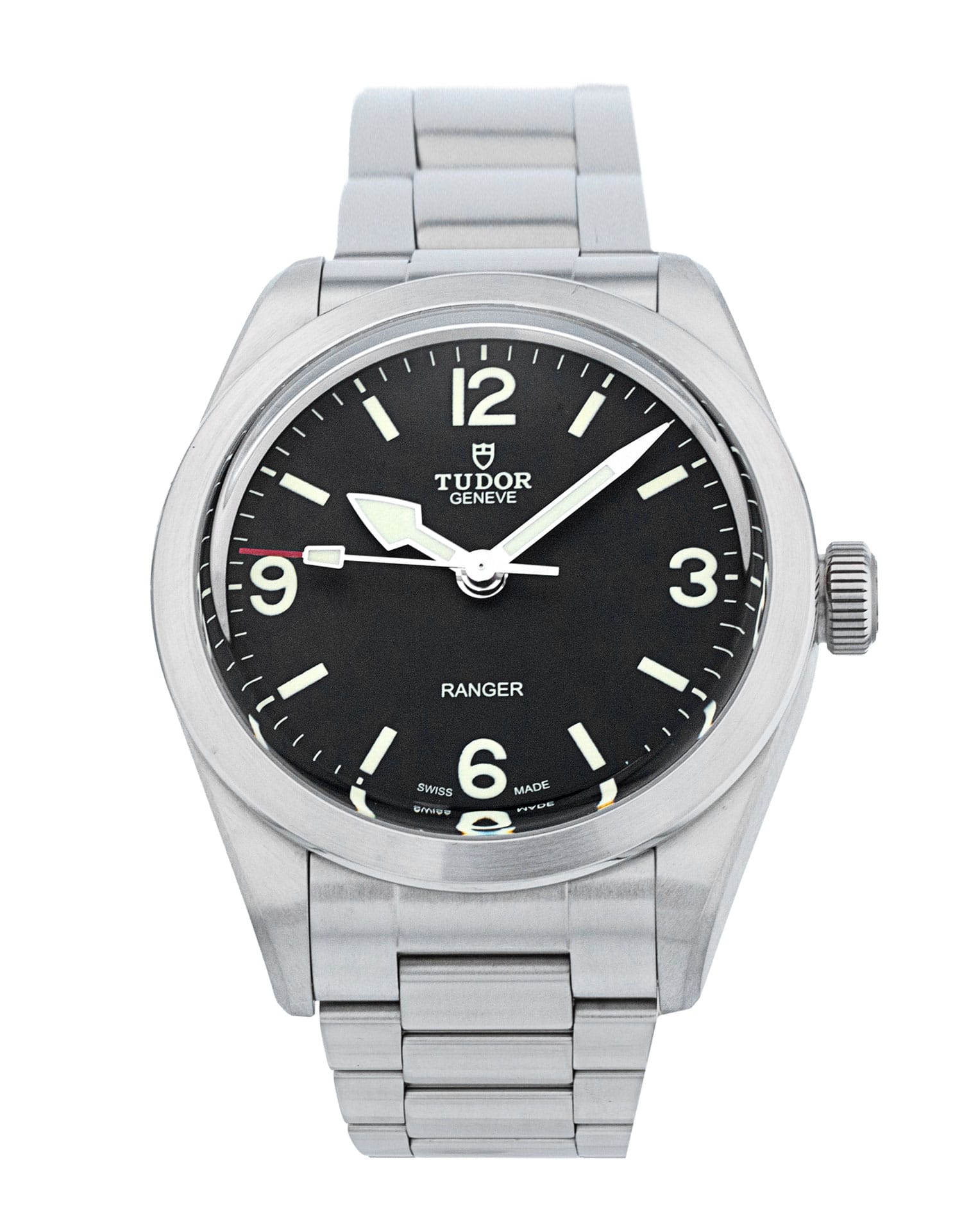 This Tudor Ranger M79950-0001 has a black quarter arabic dial and a bracelet strap. This Tudor has undergone a thorough inspection of water resistance, accuracy, functionality and condition to determine the level of reconditioning required to meet our strict standards. It has also been referenced against technical documents and manufacturer records where available to ensure authenticity and a clean history. Our watches have a 24-month warranty for your peace of mind, in conjunction with any remaining manufacturer’s warranty from new or from service. To maintain the manufacturer’s warranty on this watch, it has not been polished in our service centre.