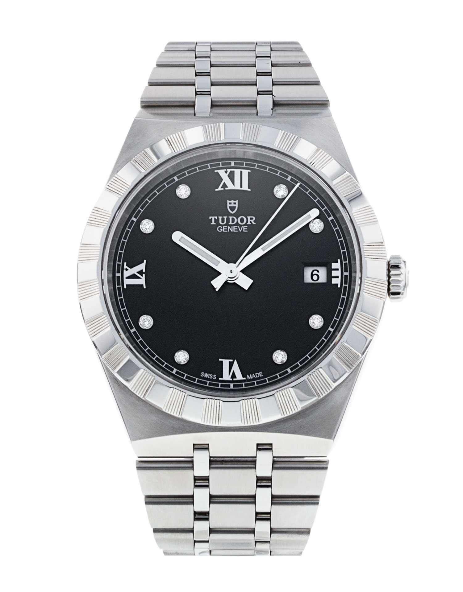 This Tudor Royal M28500-0004 has a black diamond dial and a bracelet strap. This Tudor has undergone a thorough inspection of water resistance, accuracy, functionality and condition to determine the level of reconditioning required to meet our strict standards. It has also been referenced against technical documents and manufacturer records where available to ensure authenticity and a clean history. Our watches have a 24-month warranty for your peace of mind, in conjunction with any remaining manufacturer’s warranty from new or from service. To maintain the manufacturer’s warranty on this watch, it has not been polished in our service centre.
