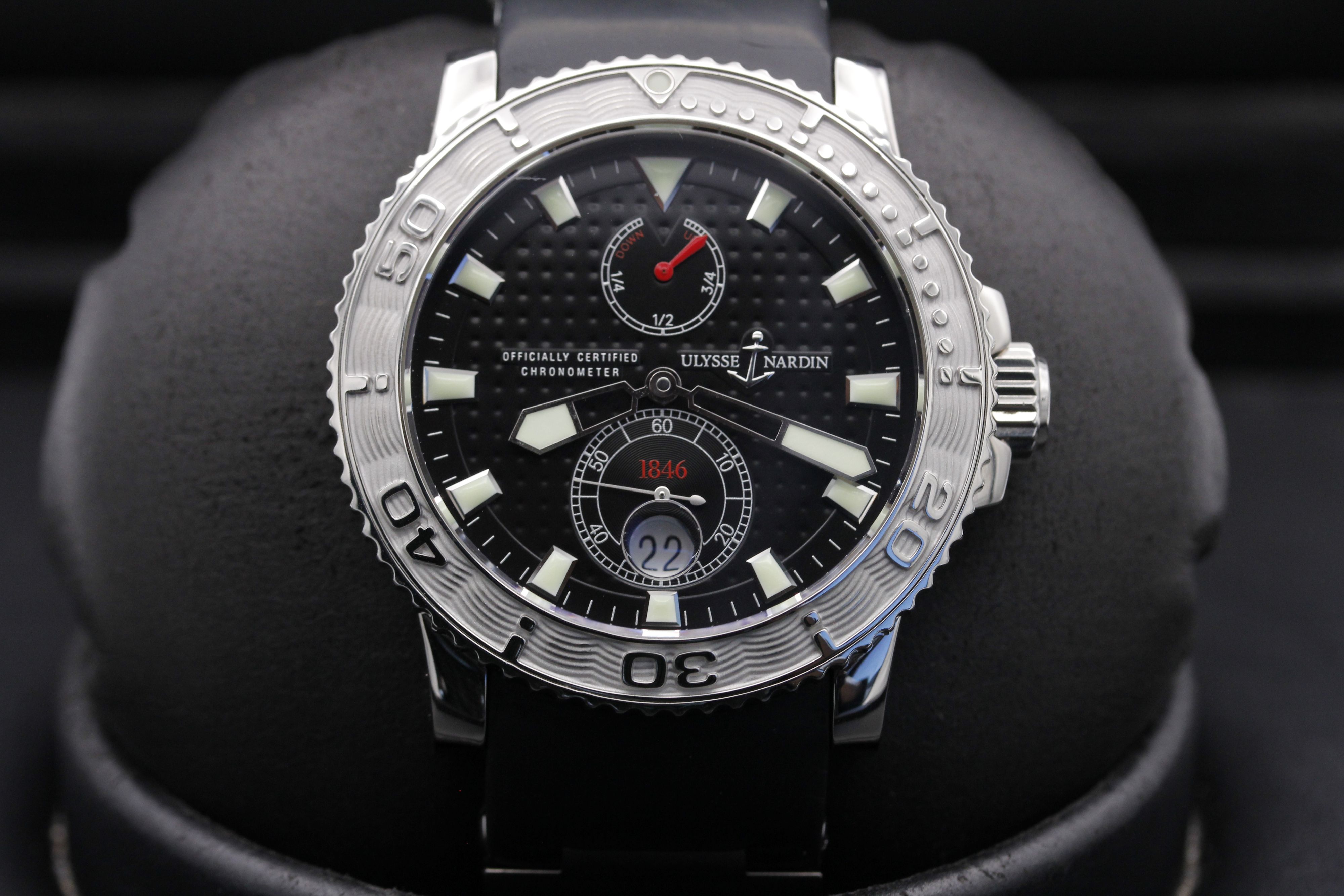 This Ulysse Nardin Marine Chronometer 263-51 has a silver dial and a bracelet strap. This Ulysse Nardin has undergone a thorough inspection of water resistance, accuracy, functionality and condition to determine the level of reconditioning required to meet our strict standards. It has also been referenced against technical documents and manufacturer records where available to ensure authenticity and a clean history. All our watches have a 24-month warranty for your peace of mind.
