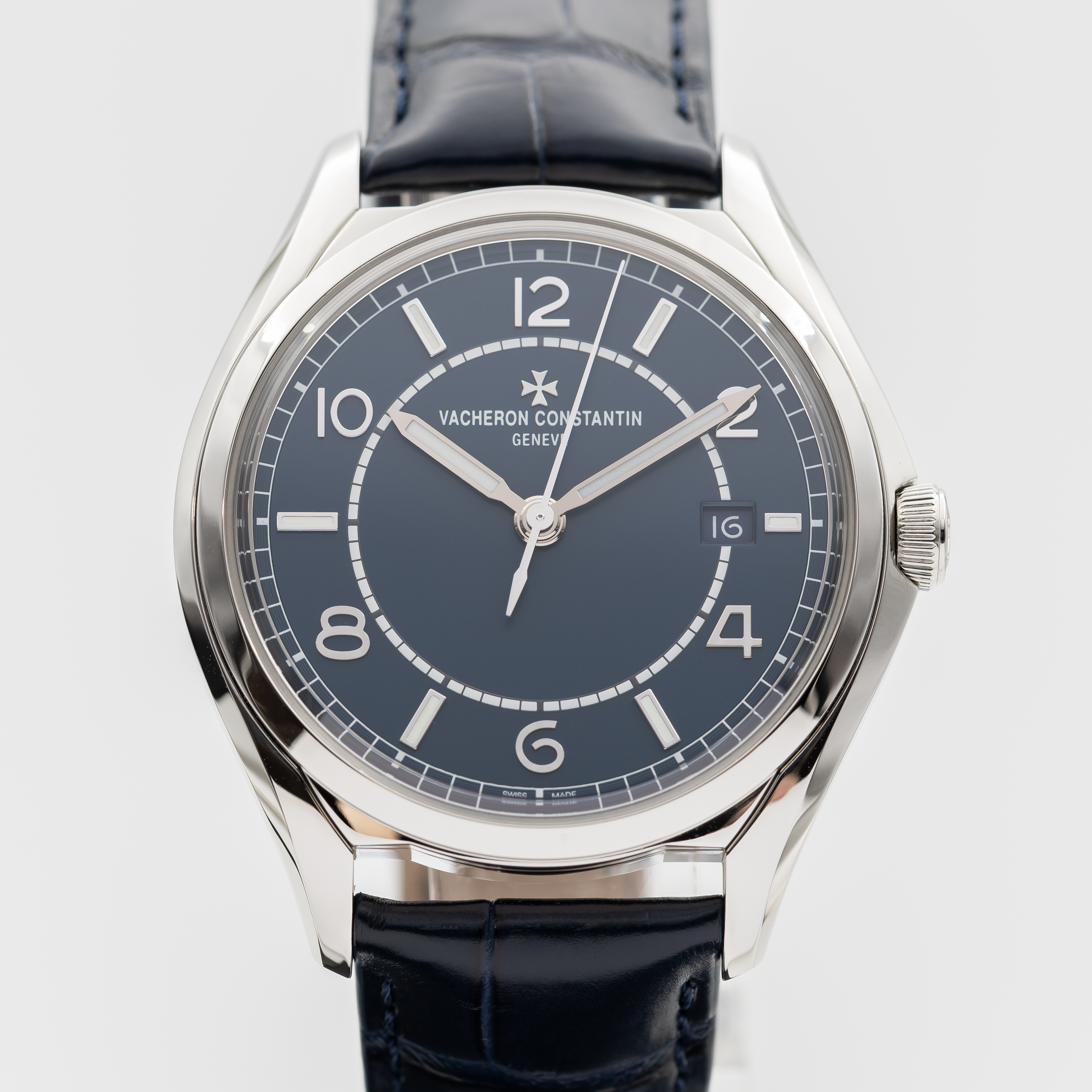 This Vacheron Constantin Fiftysix 4600E/000A-B487 has a blue arabic dial and a leather strap. This Vacheron Constantin has undergone a thorough inspection of accuracy, functionality and condition at our Vacheron Constantin certified service centre to determine the level of reconditioning required to meet our strict standards. It has also been checked against our records to ensure authenticity. All our watches have a 24-month warranty for your peace of mind.