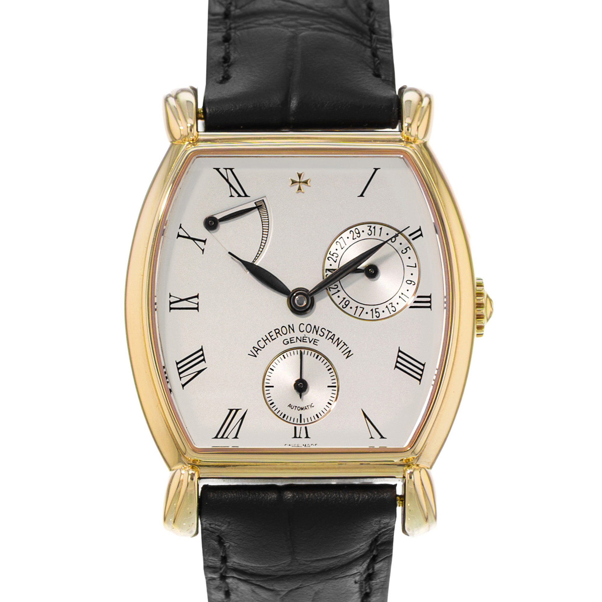 This Vacheron Constantin Les Historiques 47240/000J-5 has a silver roman numeral dial and a leather strap. This Vacheron Constantin has undergone a thorough inspection of accuracy, functionality and condition at our Vacheron Constantin certified service centre to determine the level of reconditioning required to meet our strict standards. It has also been checked against our records to ensure authenticity. All our watches have a 24-month warranty for your peace of mind.