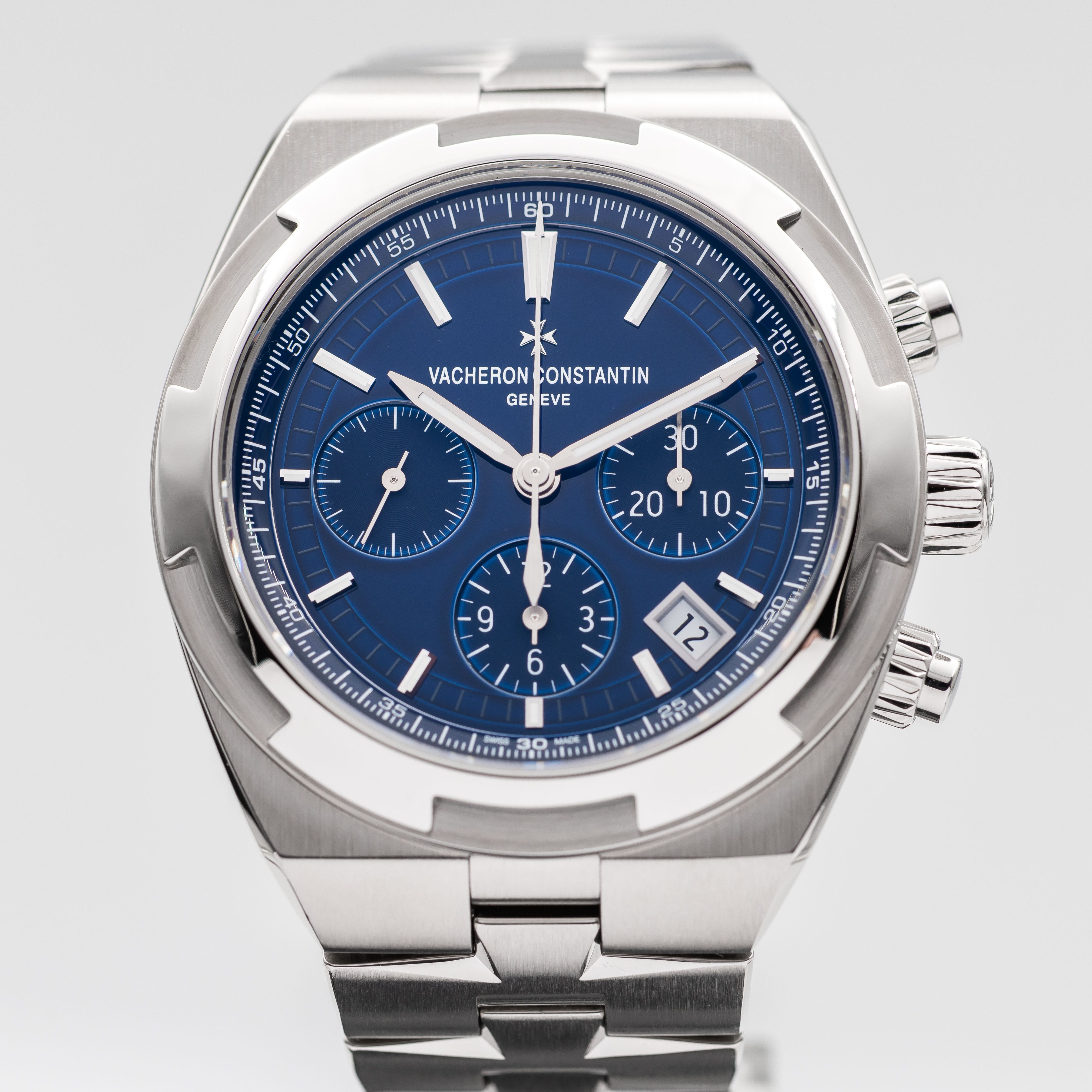 This Vacheron Constantin Overseas 5500V/110A-B148 has a blue baton dial and a bracelet strap. This Vacheron Constantin has undergone a thorough inspection of accuracy, functionality and condition at our Vacheron Constantin certified service centre to determine the level of reconditioning required to meet our strict standards. It has also been checked against our records to ensure authenticity. All our watches have a 24-month warranty for your peace of mind.
