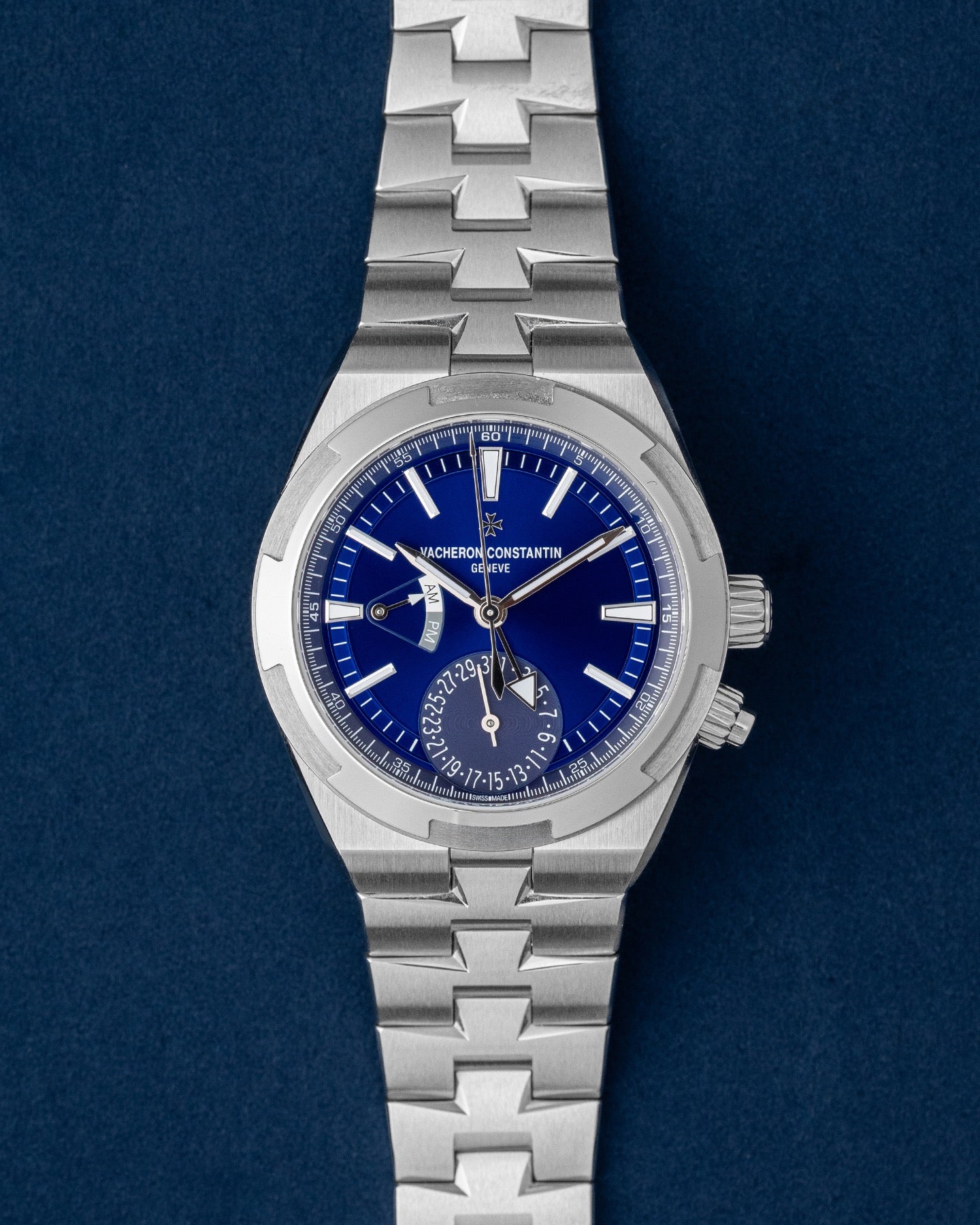 This Vacheron Constantin Overseas 7920V/210A-B334 has a blue baton dial and a bracelet strap. This Vacheron Constantin has undergone a thorough inspection of accuracy, functionality and condition at our Vacheron Constantin certified service centre to determine the level of reconditioning required to meet our strict standards. It has also been checked against our records to ensure authenticity. Our watches have a 24-month warranty for your peace of mind, in conjunction with any remaining manufacturer’s warranty from new or from service.
