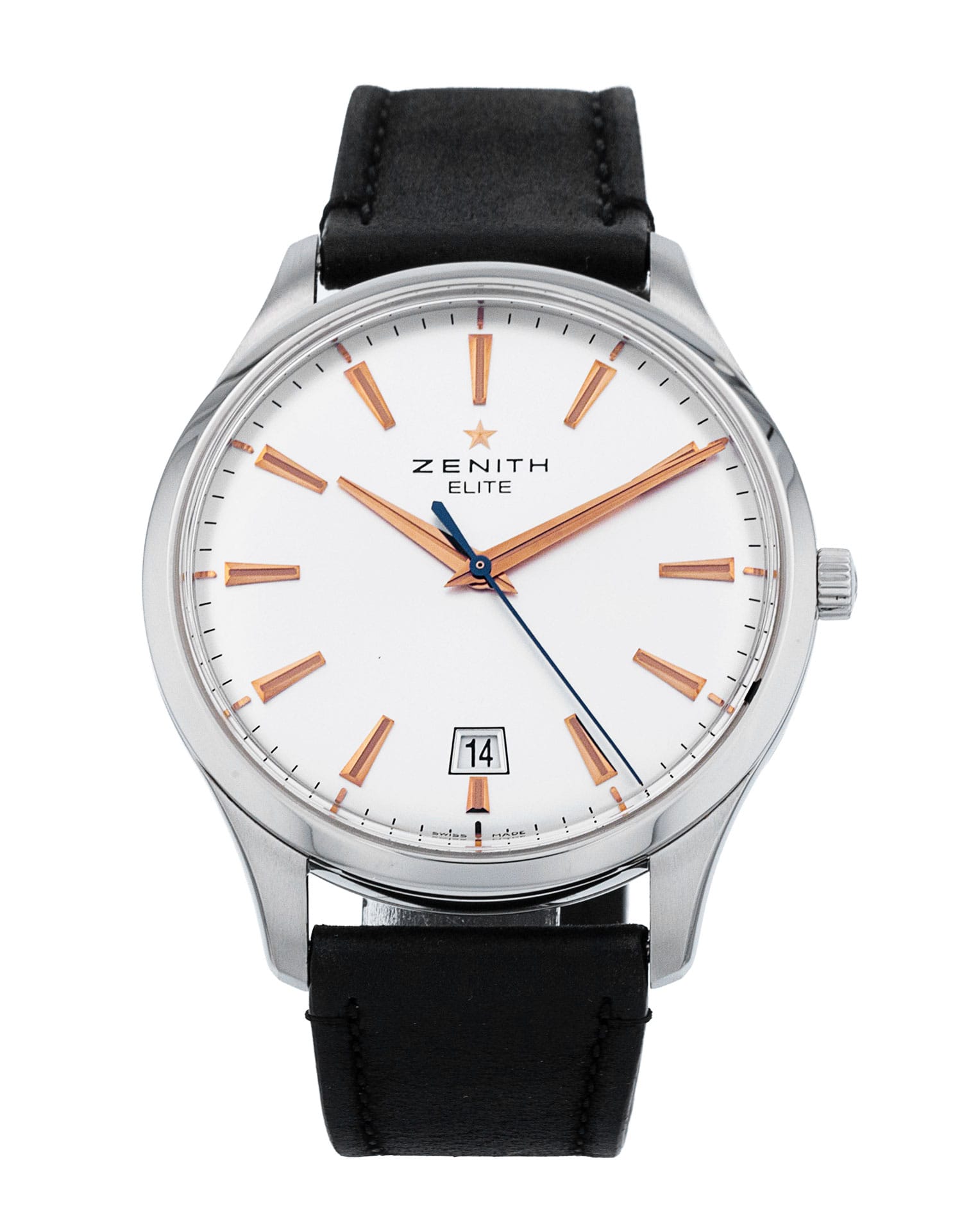 This Zenith Captain 03.2020.670/01.C498 has a silver baton dial and a leather strap. This Zenith has undergone a thorough inspection of water resistance, accuracy, functionality and condition to determine the level of reconditioning required to meet our strict standards. It has also been referenced against technical documents and manufacturer records where available to ensure authenticity and a clean history. All our watches have a 24-month warranty for your peace of mind.