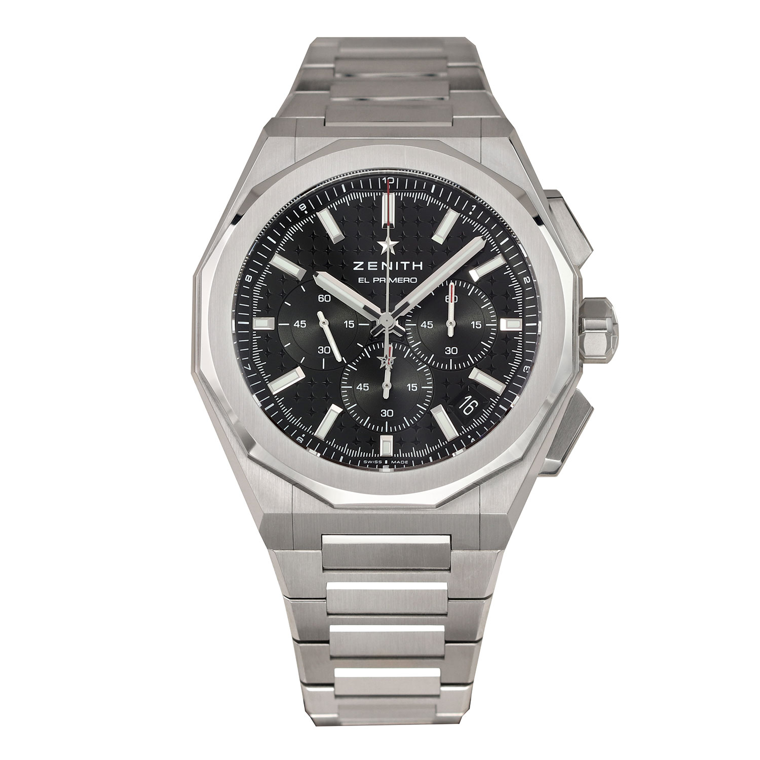 This Zenith Defy 03.9500.3600/21.I001 has a black baton dial and a bracelet strap. This Zenith has undergone a thorough inspection of water resistance, accuracy, functionality and condition to determine the level of reconditioning required to meet our strict standards. It has also been referenced against technical documents and manufacturer records where available to ensure authenticity and a clean history. Our watches have a 24-month warranty for your peace of mind, in conjunction with any remaining manufacturer’s warranty from new or from service.