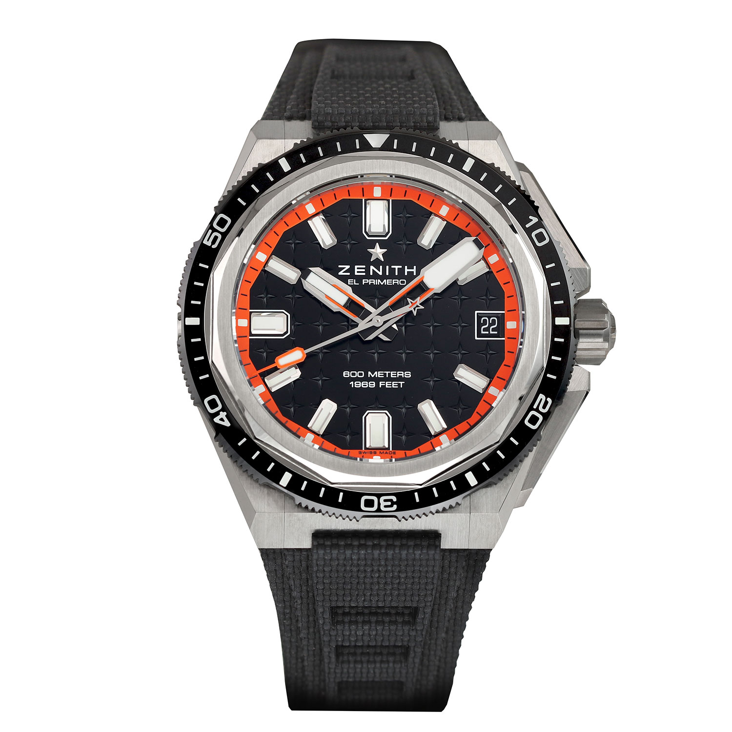 This Zenith Defy 95.9600.3620/21.I300 has a black star-patterned dial and a fabric strap. This Zenith has undergone a thorough inspection of water resistance, accuracy, functionality and condition to determine the level of reconditioning required to meet our strict standards. It has also been referenced against technical documents and manufacturer records where available to ensure authenticity and a clean history. Our watches have a 24-month warranty for your peace of mind, in conjunction with any remaining manufacturer’s warranty from new or from service.